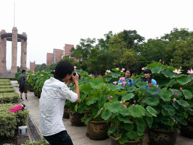 近日,图书馆南广场的荷花景观吸引了一群又一群毕业生的身影。他们以各种组合方式在盛开的荷花间合影留念。他们有来自整个班的,有寝室的,有社团,有情侣……各种创意,各种表情,各种服装造型,他们在洋溢着清新香味的荷花中留下了甜美的笑容,以此方式,表达对母校的热爱和眷恋之情。有同学说:“校园荷花景观给我们带来了惊喜,不仅增添了夏天校园的色彩,更点燃了我们毕业生的青春激情。”也有女生说:“穿着旗袍在荷花间留影,古色古香,清新亮丽,与荷花争艳,心情格外美!”