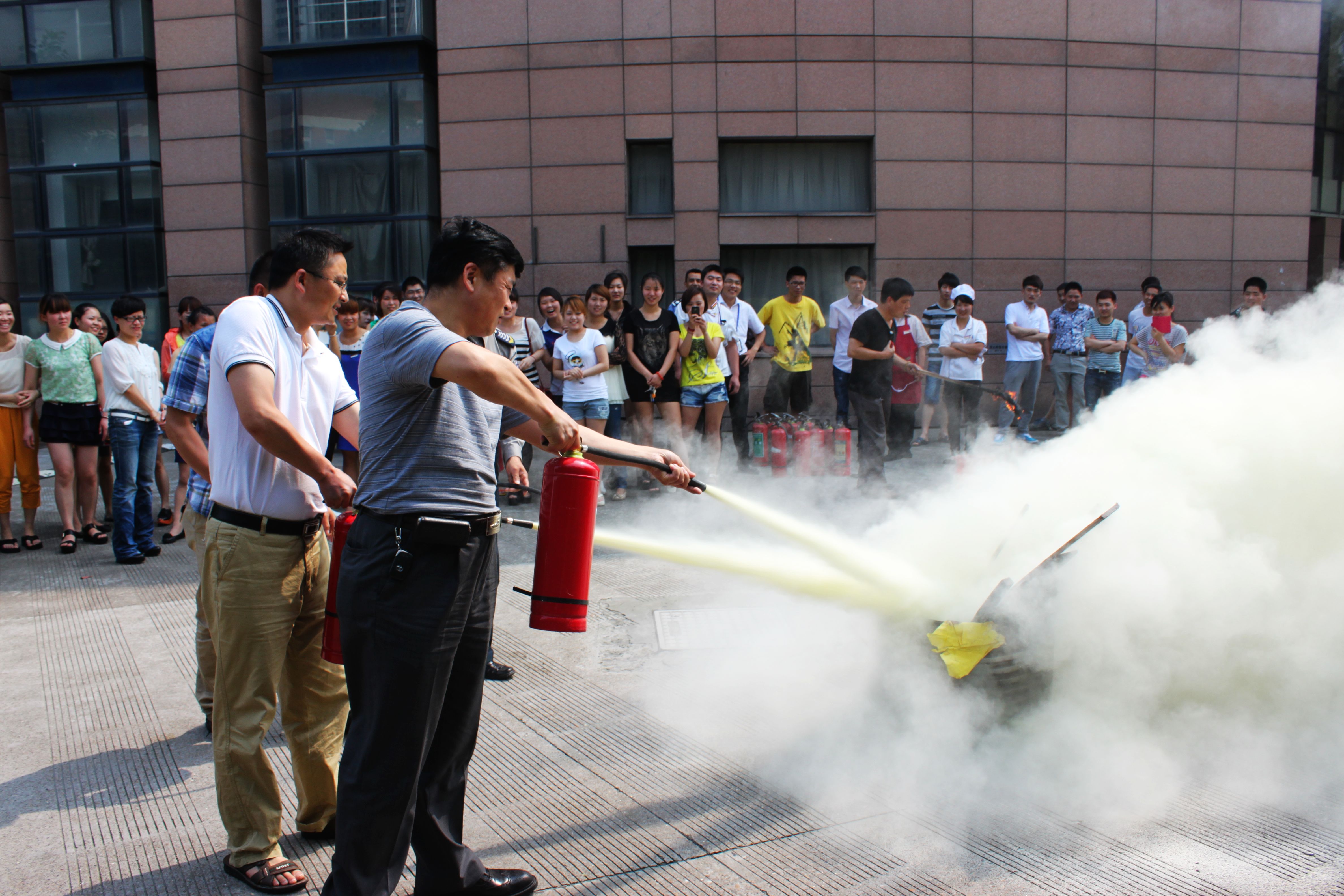 讲座结束后,商铺从业人员在图书馆北侧参加了灭火器使用培训和演练。