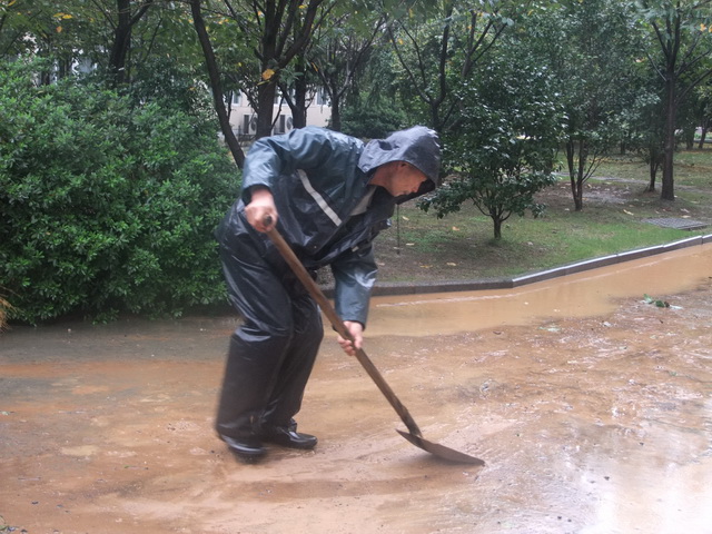 8日一早,中心保障部人员又冒雨突击,清理因山上雨水带来的黄泥沙,及时还校园一个干净整洁的环境。