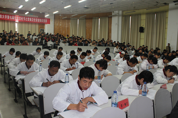 11月14日,第七届饮食文化节系列活动之饮食安全知识竞赛在7教127教室成功举办,饮食服务中心全体员工共计400余人参加了此次竞赛。后勤服务总公司副总经理、总务处副处长张晓泉应邀出出席了此次知识竞赛。