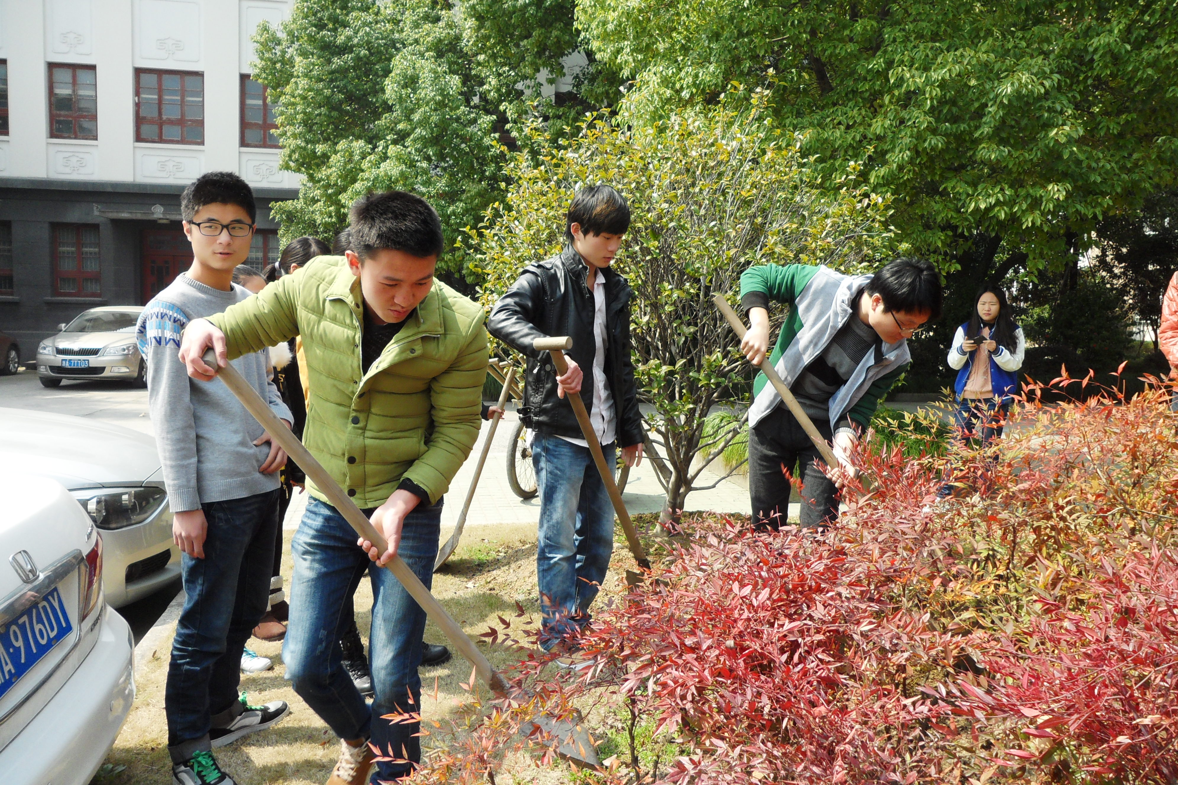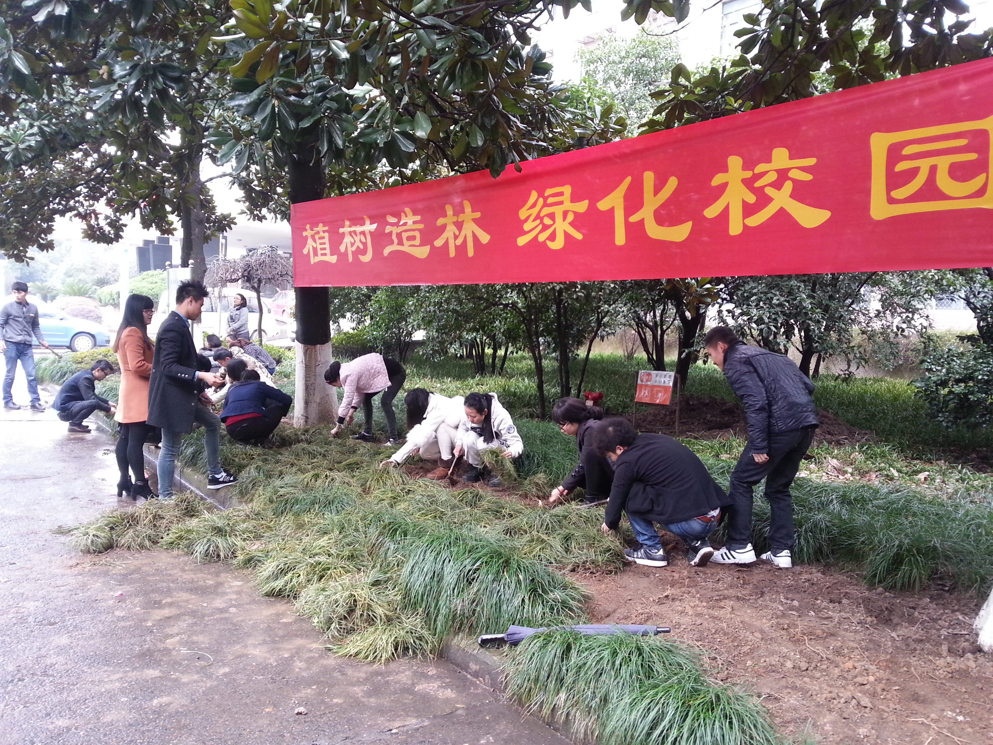 名学生参加了此次活动,大家分组协作,填土浇水,兴趣盎然,共种植了天竹、麦冬、金边黄杨、红叶石楠等