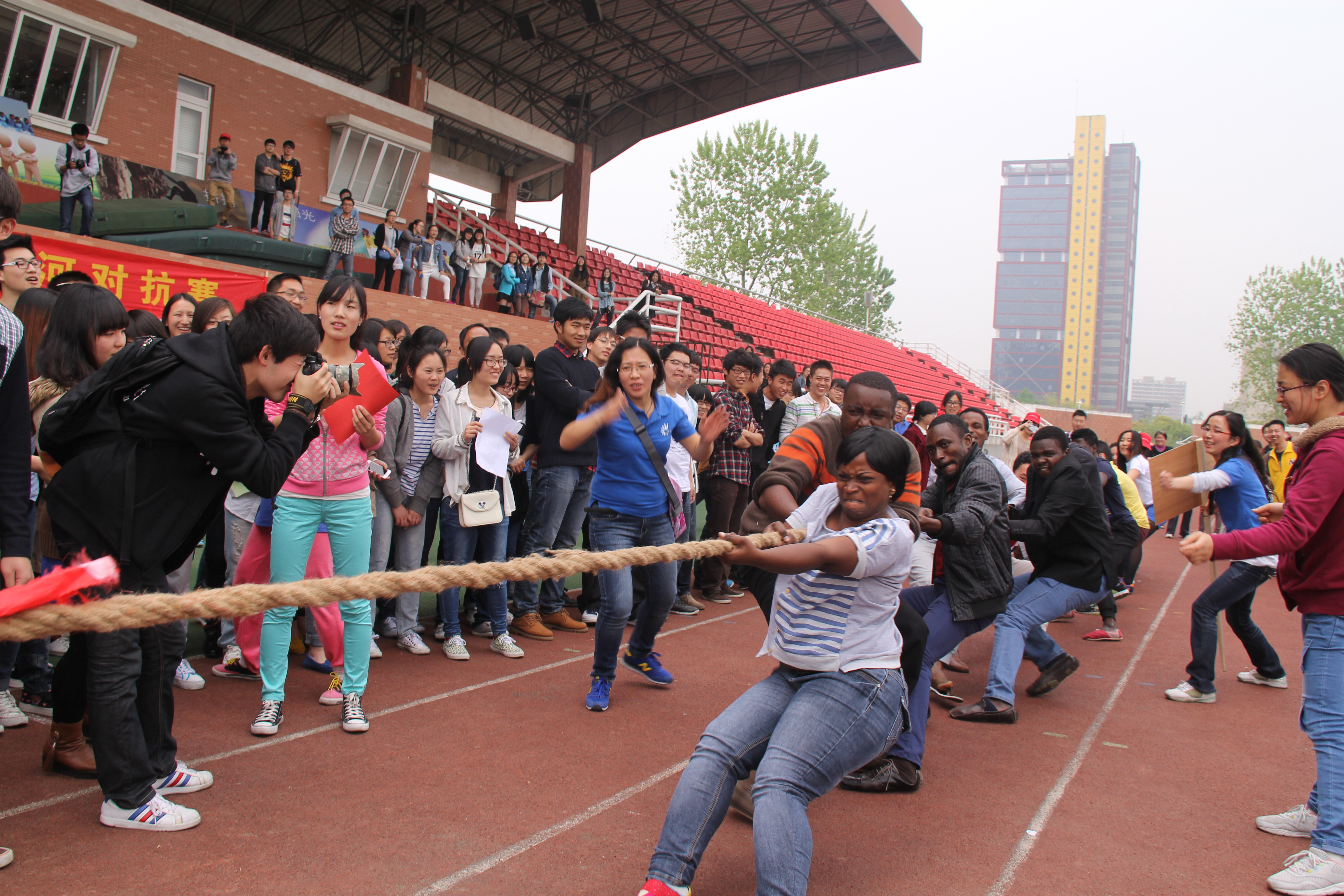 比赛共有23支代表队,16支男生队,7支女生队,采取男女生对抗的方式,10男生对阵16名女生。 随着一声哨响,参赛选手们个个生龙活虎,鼓足劲,涨红脸,全力以赴,其他的同学组成啦啦队,挥舞手臂,拼命呐喊……现场一片热闹景象。尤其是留学生代表队展现了他们强大的实力,“中外对抗赛”,吸引了全场同学们的关注,也给同学们一个近距离与留学生交流的机会,28号楼女生代表队,连续PK掉两支男生代表队和一支女生代表队,获得特等奖,赢得了同学们的啧啧称赞。最终经过四轮的激烈角逐, 12号楼男生队获得另外一个特等奖,同时还决出了2名一等奖、4名二等奖、8名三等奖。