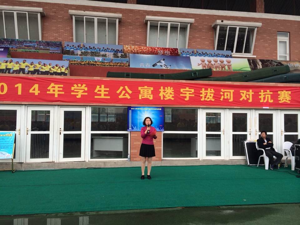 金涛在致辞中说,运动可以给我们带来快乐,让我们更加有朝气,拔河可以培养我们的拼搏精神和团队协作意识,借此加强各楼之间的交流,丰富同学们的公寓生活。王秋兰讲解了比赛流程和注意事项,最后冯伟明宣布拔河比赛正式开始,并吹响了第一组比赛的哨音。
