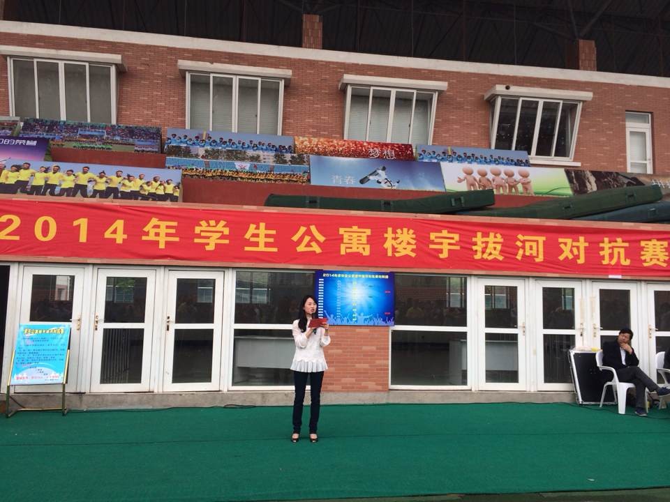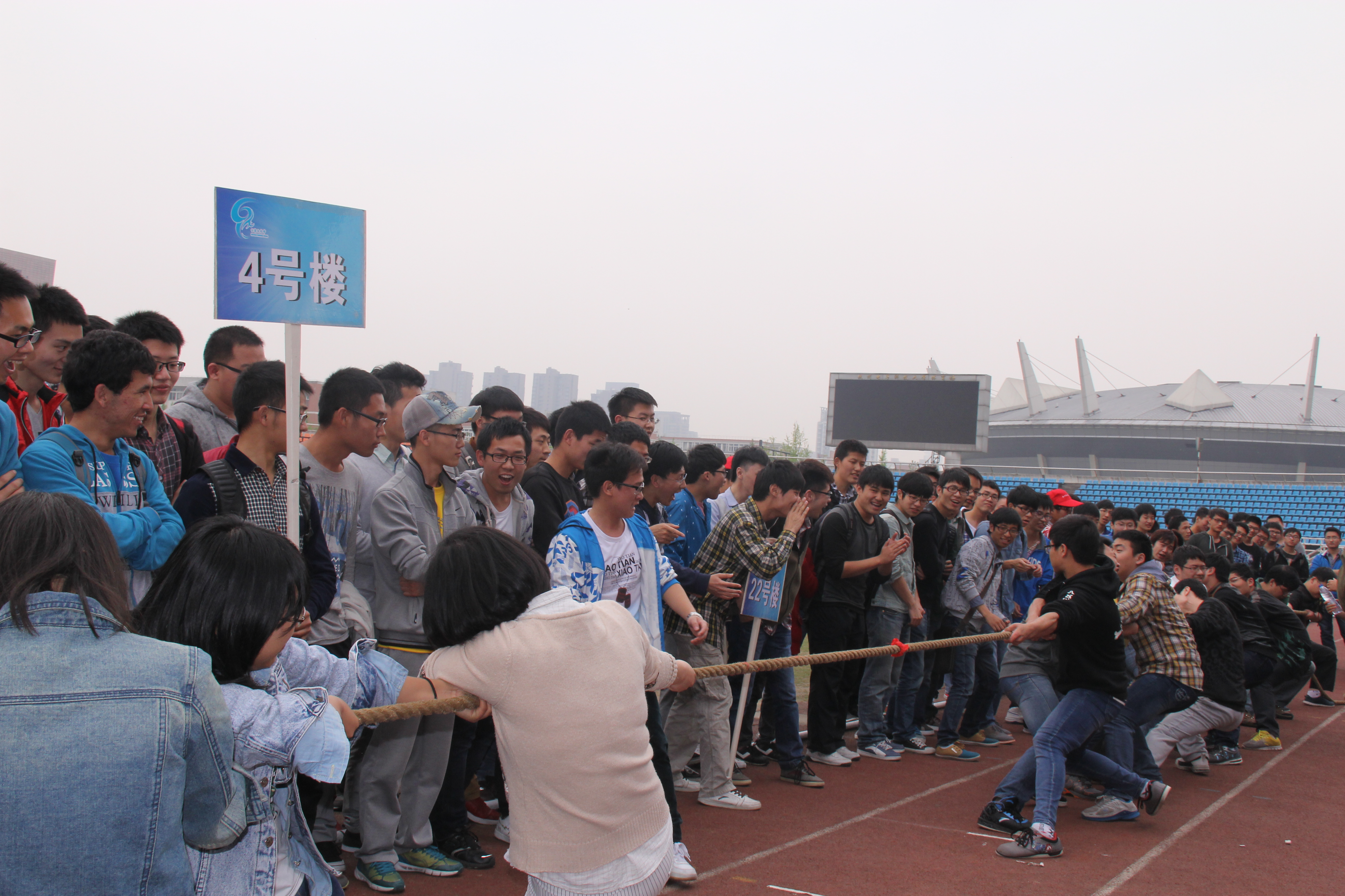 4月16日下午,学生公寓楼宇拔河对抗赛在体育场进行,来自生活区本部、研究生公寓、东校区23支代表队的运动员、啦啦队共2100余名同学参加,后勤服务总公司总经理、总务处处长冯伟明、学生处副处长金涛、校团委副书记王秋兰应邀观看比赛。