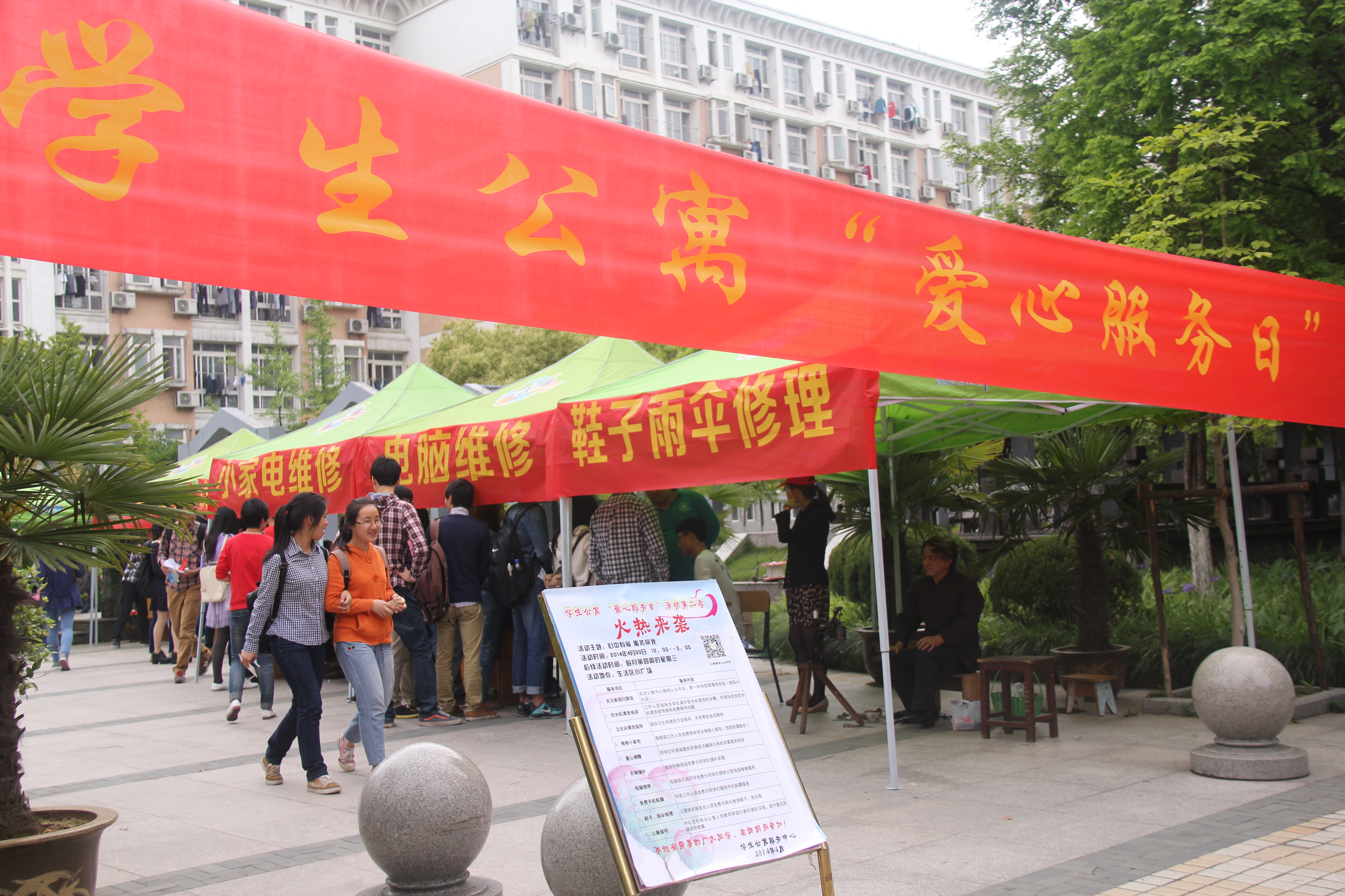 4月30日,学生公寓服务中心“爱心服务日”第二期在生活区小广场如期举行,活动继续为广大同学们提供一系列爱心服务。
