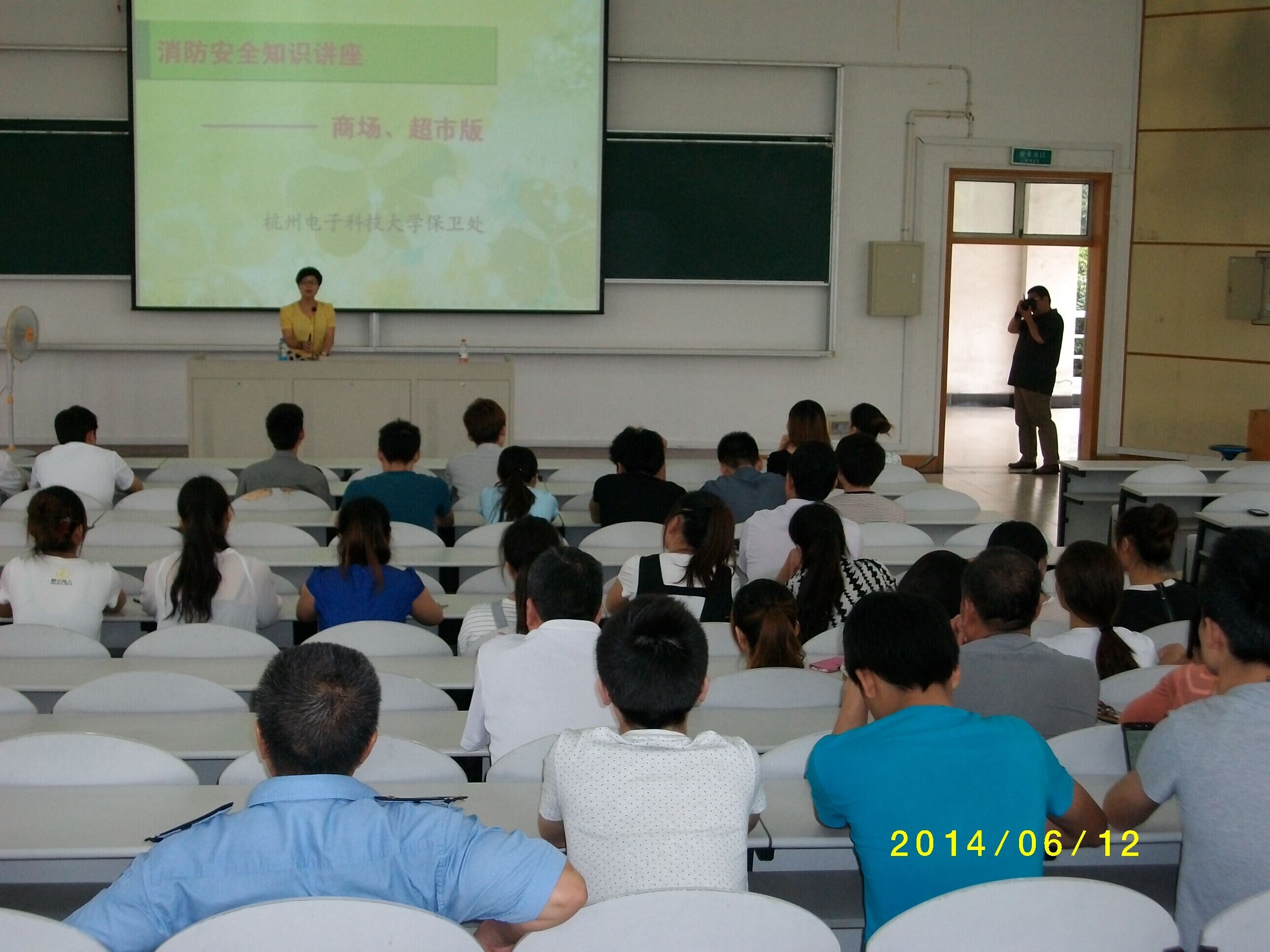 根据2014年培训计划,6月12 日下午,综合办公室在下沙校区七教127室举办了商铺消防安全培训。下沙校区、G区商铺一级承租户及各经营商户56人参加了消防安全培训。培训分知识讲座和灭火器演练两个阶段,由综合办主任张滢主持。