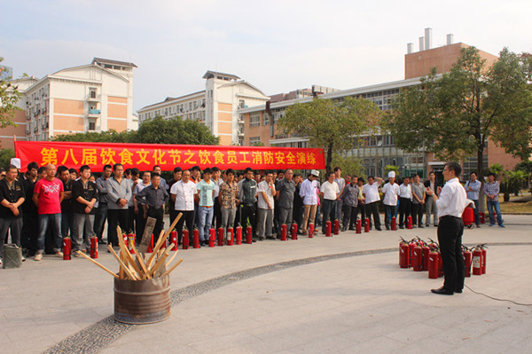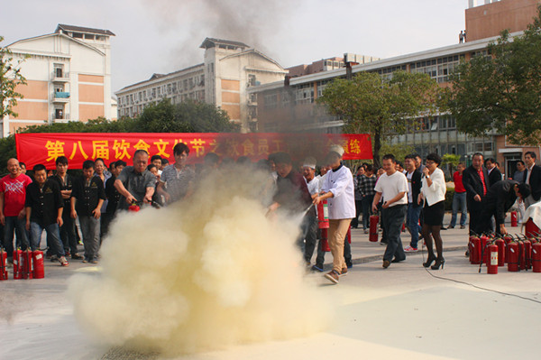 为了使餐饮员工进一步了解消防基础知识,提高安全防范意识,增强自我保护能力和消防突发事件的应急处理能力,饮食服务中心于10月28日下午举办了消防安全演练。饮食服务中心相关负责人及100余名员工参加了演练。公司副总经理张晓泉亲临现场指导。