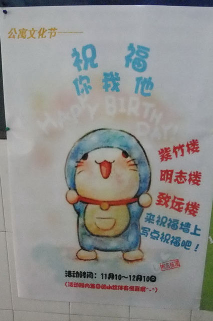 “关爱大学生活,体验校园温暖”生日送祝福活动是此次学生公寓文化节活动之一。活动通过海报、电子祝福墙、黑板报、QQ、信工小微等方式宣传生日祝福,再由学院生活服务中心学生送生日蛋糕、生日贺卡、生日帽到同学寝室。