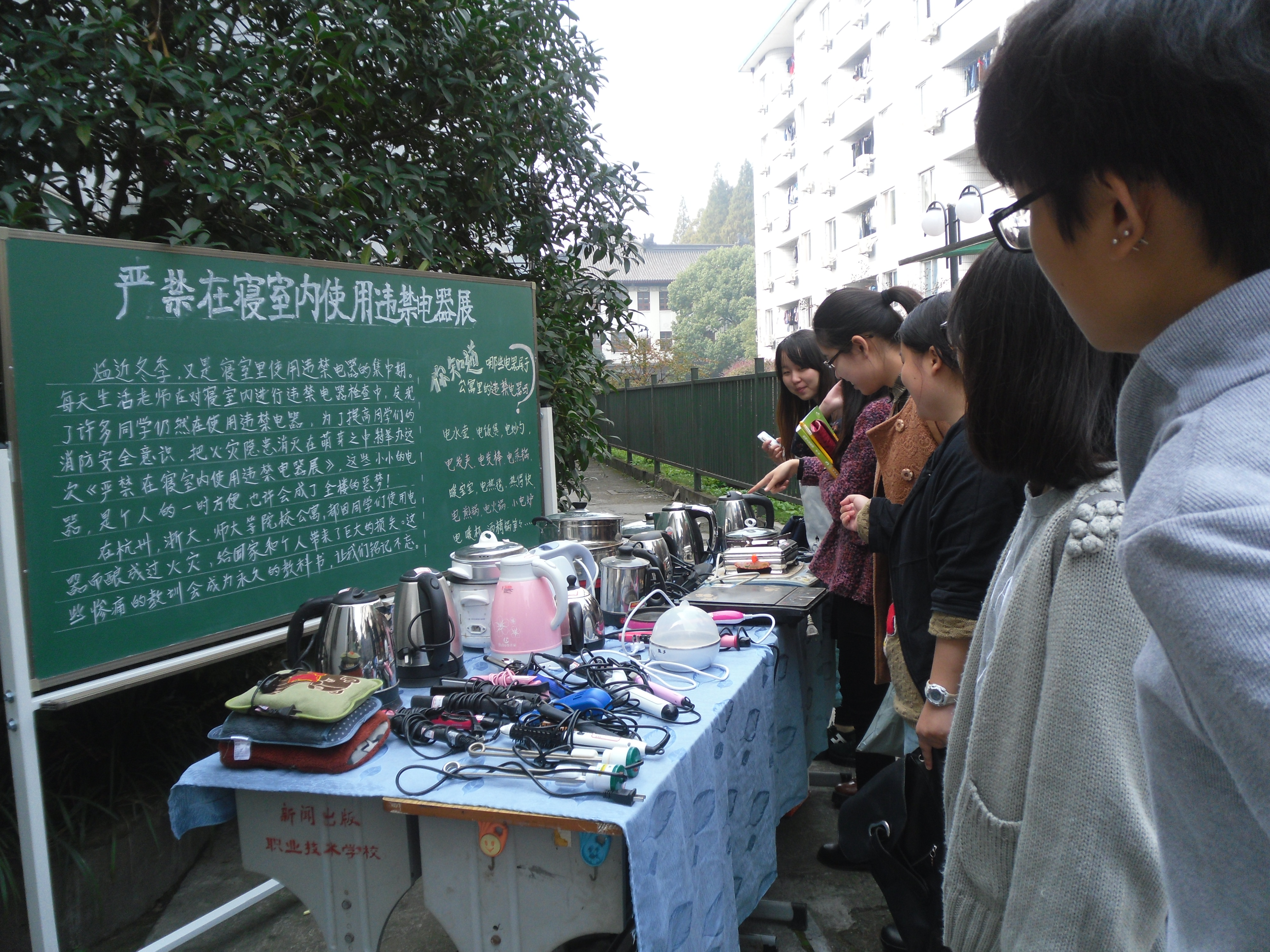 11月14日,文一服务中心公寓部在六七幢对本年度查扣的部分违禁电器进行了集中展示,警示同学们自觉抵制寝室违禁电器,提高消防安全防范意识。