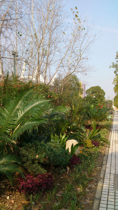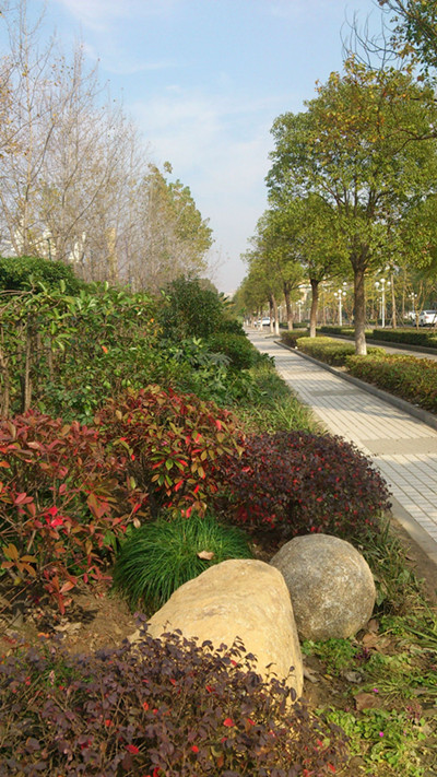 彩化校园作为公司年度重点项目,金沙西路花境营造在9月初开始计划实施,从前期的施工设计到苗木石材采购到后期的施工放样成型,截止12月初,已施工完成并初具成效。
