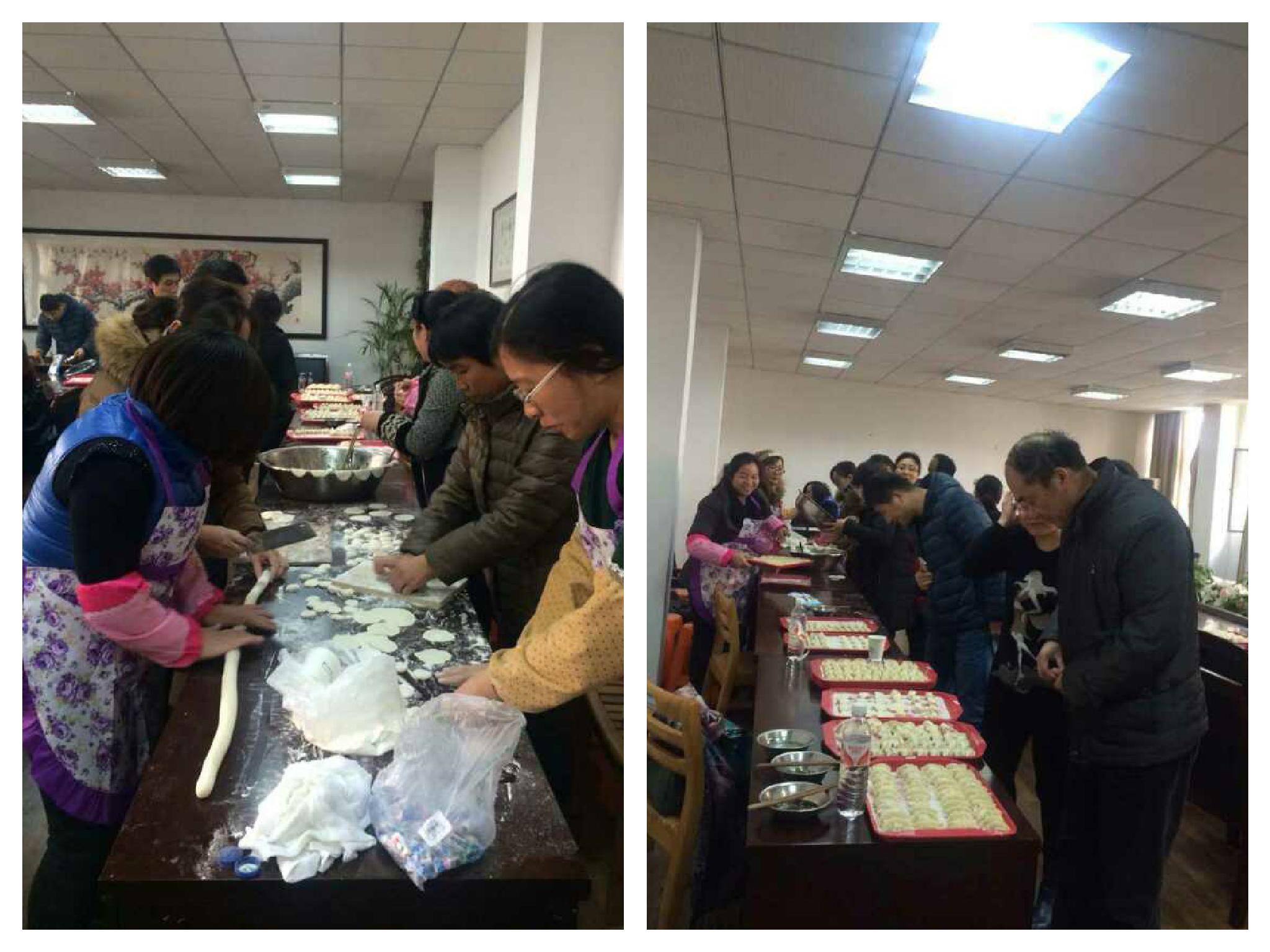 12月31日中午,学生公寓服务中心在22号楼会议室举办了“喜迎新年—包饺子大赛”活动,各楼生活指导老师及以上人员30余人参加了此次活动。学工部部长潘申洲、公司领导冯伟明、朱培华、王劲峰等应邀来到现场与大家共迎新年。