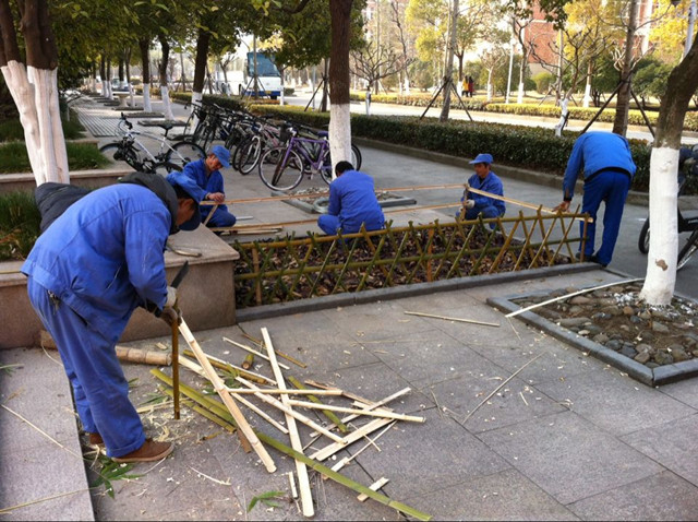 为改善这一现状,公共服务中心绿化管理部经过多番讨论、试验,决定采用竹篱笆装饰的方式美化花坛,从而防止学生踩踏草花现象。
