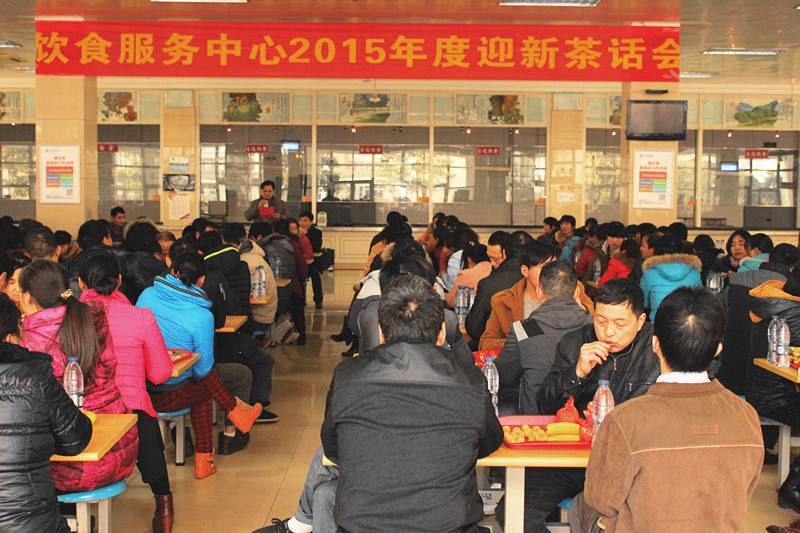 为了增进友谊,增强餐饮员工凝聚力,丰富员工业余生活。1月23日,饮食服务中心全体员工齐聚一堂共同举办了羊年迎新茶话会。