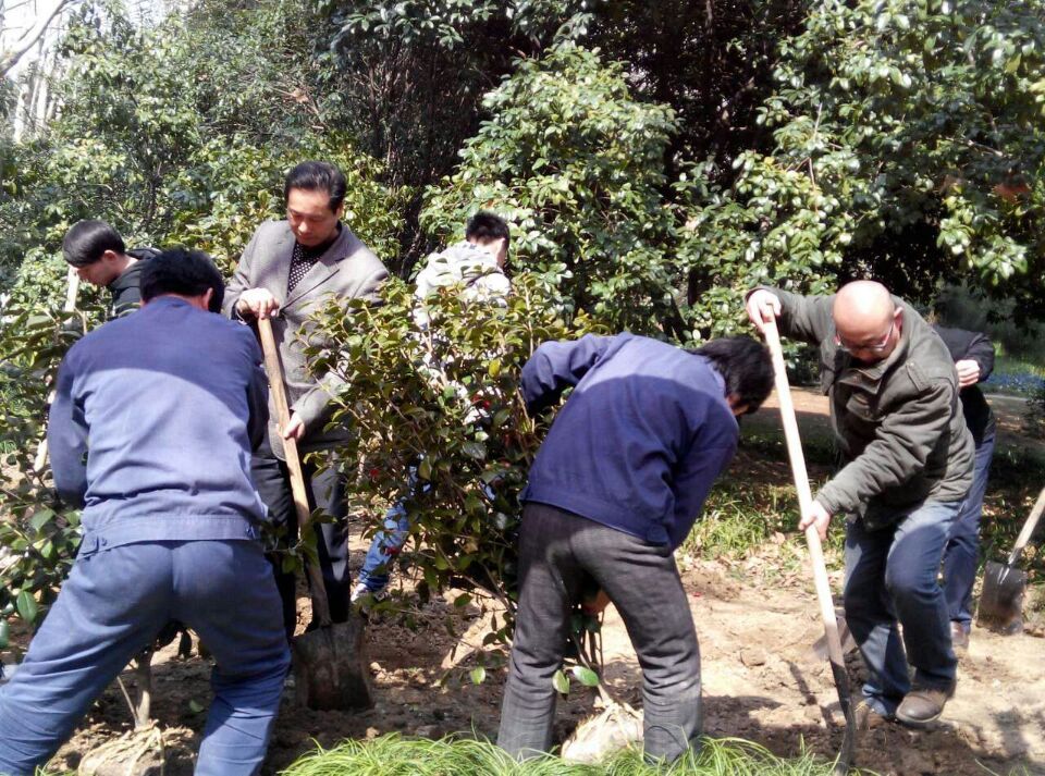 活动中大家热情高涨,你挖坑、我填土、他浇水、分工合作,齐心协力种好每一棵苗木,共种植了茶花树、非洲茉莉、桂花等树木