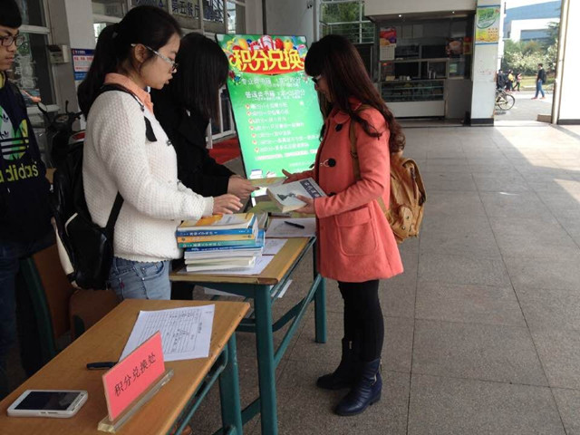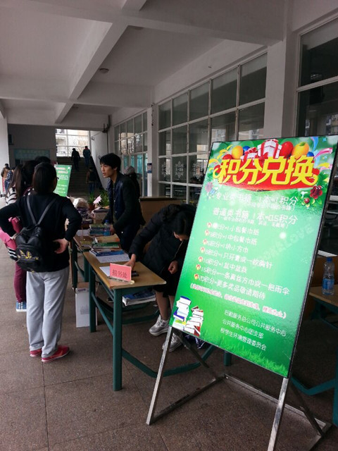 此次活动受到了领导的大力支持以及校学生环境管理委员会同学的倾力帮助,通过丰富多样的奖品兑换来吸引同学捐赠更多的书籍。前来捐书的学生经过积分核算,再拿着相应的积分凭证到奖品区兑换合适的奖品,最后工作人员将奖品发放登记及书籍整理装箱。