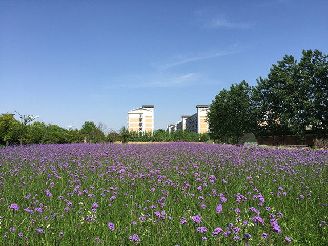 “彩化校园”工程是公共服务中心的重点工作。今年,部门继续坚持不懈,将彩化校园工作予以持续和提升。马鞭草园位于体育场北的百花园中,共种植有柳叶马鞭草20000株,中心在去年原有10000株的基础上又新增10000株,在经过一个冬天的沉寂、春的孕育之后又迎来新一季的花期。柳叶马鞭草为马鞭草科多年生直立草本植物,开花植株可高达1.5米,花莛虽高却不倒伏,花期为5-10月,最佳观赏期为6-7月,值此盛花时节,轻风拂过,满眼紫色的妖娆。