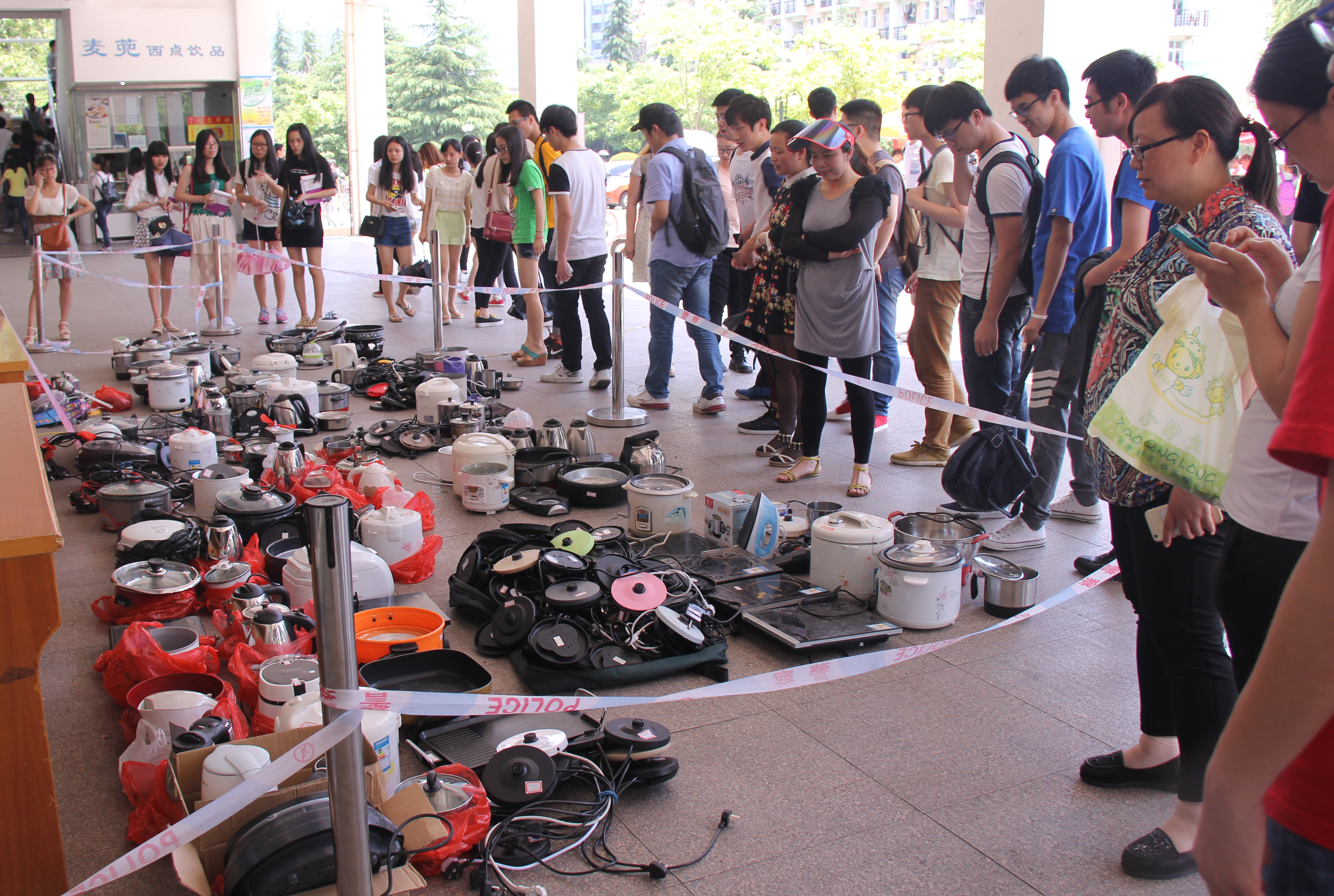 日,学生公寓服务中心在五餐厅前举办了公寓违禁电器展,警示学生自觉遵守公寓管理规定,杜绝违禁电器,构建平安公寓。