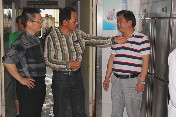 5月15日,后勤直属党总支书记李中昌在后勤服务总公司副总经理张晓泉及饮食服务中心相关人员陪同下,先后到东校区餐厅、研究生餐厅就饮食安全工作进行突击检查。