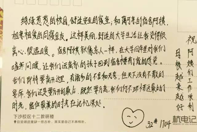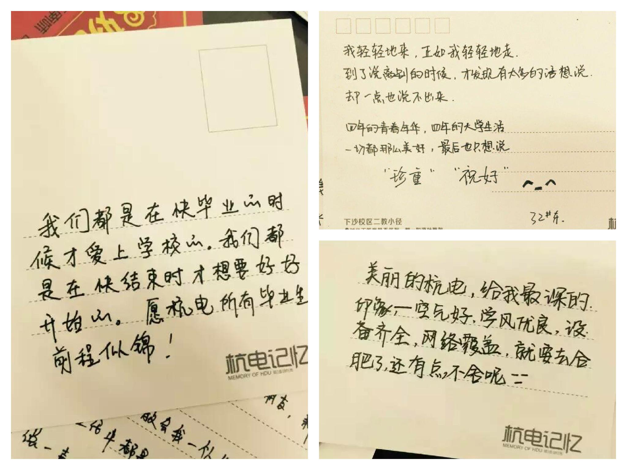 座谈会后,同学们在“杭电记忆”明信片上留下了自己的感恩、不舍和感慨……