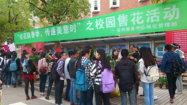 在这秋阳正暖、桂香正浓的时节,公共服务中心于10月14、15日举行了为期两天的“桂花飘香季、传递美意时”校园售花活动。
