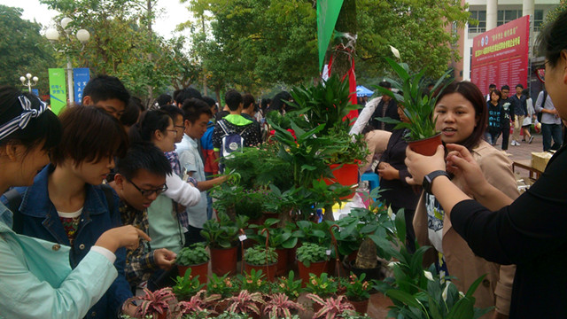 售花活动历来深受师生喜爱,为更好服务师生,中心在以往每年两次售花活动的基础上新增此次售花活动,以满足师生的购花需求。此次活动所售植物由部门精心挑选,着力选择新品种,共计出售风信子、袖珍椰子、虎刺梅、组合吊兰等植物46种,各式大小卡通瓷盆37种。此次活动受到师生的欢迎。