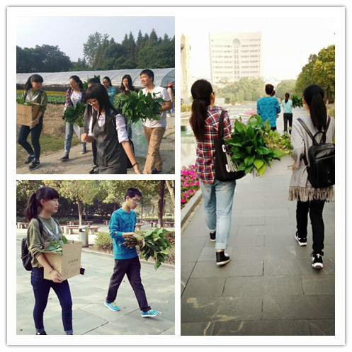 本次活动本次所用的植物主要有广东万年青、吊兰、冷水花等,数量超百盆,经过中心绿化管理部精心栽培挑选,盛放植物的盆子是一些废旧的塑料瓶子,由环管会同学们和校园美容师共同收集而来。同学们利用周末时间把这些塑料瓶自制成DIY工艺花盆,不仅环保而且实用。这一抹清新的绿色既净化了空气,美化了环境,又愉悦了身心。