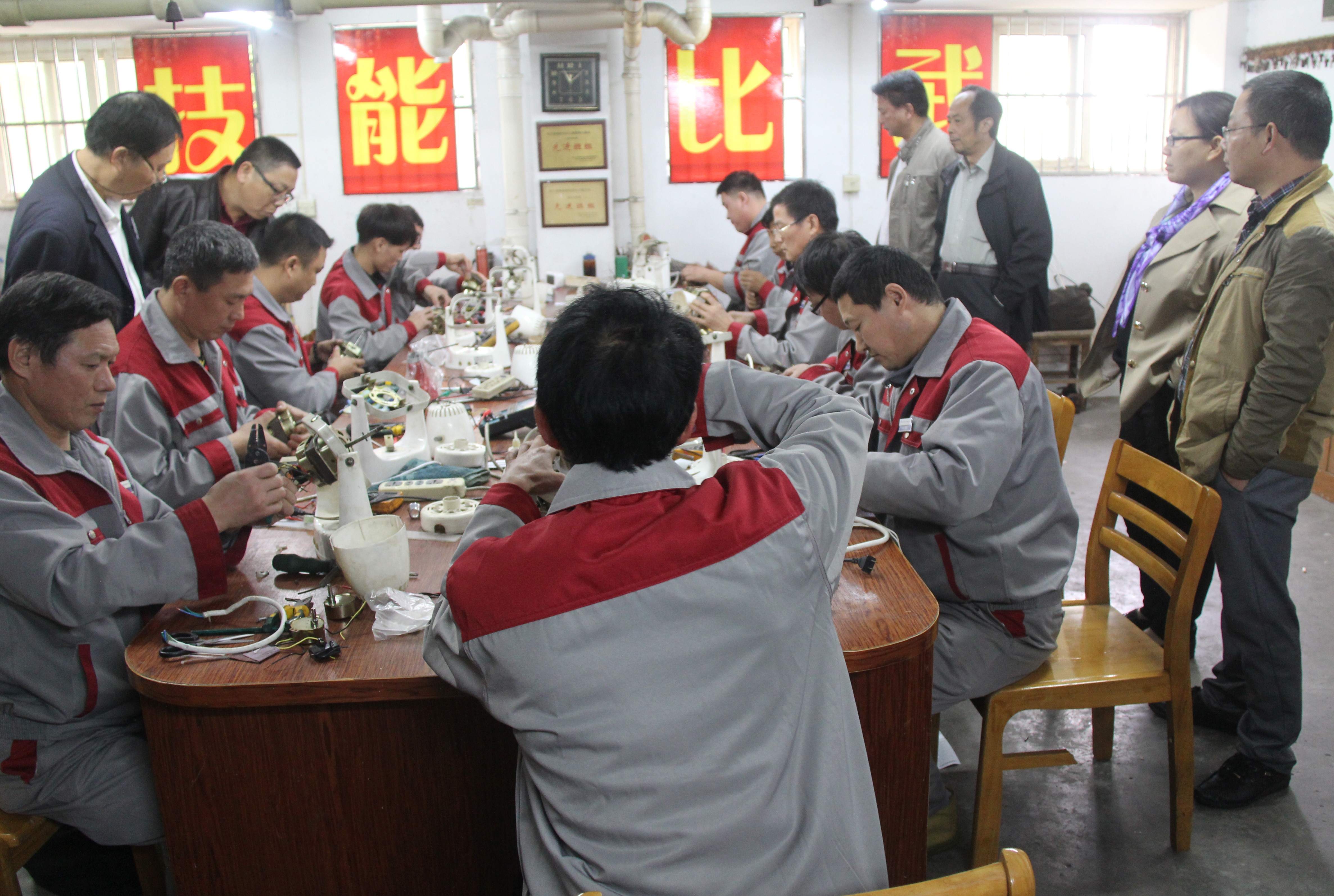 比武以理论知识和现场操作相结合的方式进行,要求员工正确画出电扇接线图和拆装电风扇机头,主要考核员工的操作流程规范、线路安装正确性、接线工艺要求,选手们均按照要求完成了考核项目。经过评委们从正确性、完成时间、操作规范等方面的集体评议,活动最终评选出一等奖一名,二等奖两名,三等奖两名。活动结束后,与会评委从技术方面进行了点评和指导。