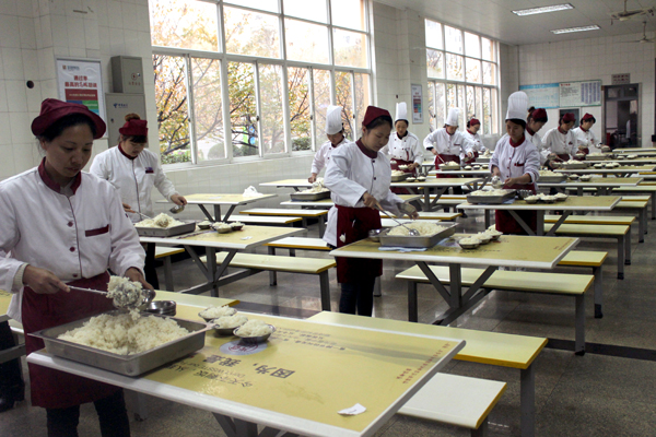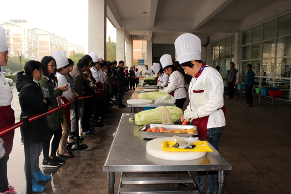 本次服务技能比武分:去皮、切配、窗口服务,其中窗口服务包括:打饭和收银。赛场上各位选手娴熟的技巧、饱满的精神面貌、沉稳的心理素质得到场外观众和评委的一致好评。为了确保比赛的公平、公正,所有比赛都参照《浙江省高校第五届餐饮服务技能比赛方案》的计分和批判规则进行。经过三个小时的角逐,最终第六餐厅的汪业云、第五餐厅的金静、第六餐厅的郑翠玉分别获得去皮、切配、窗口服务项目第一名。