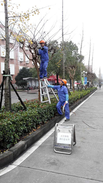 随着冷空气降临杭城,公共服务中心将校园内紫薇冬季修剪工作提上日程,拉开了冬季树木防寒防冻防病虫害的序幕。