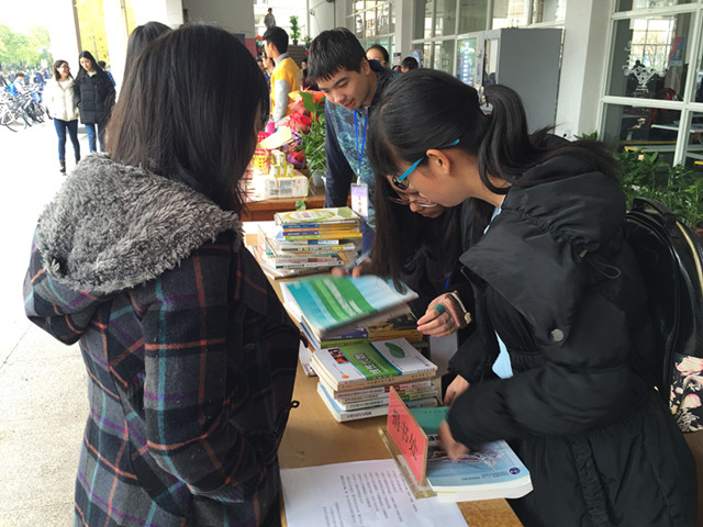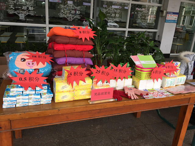 本次活动的主题为“赠人玫瑰,手留余香”。学生通过捐献书籍获得相应积分,现场兑换精美礼品。礼品有绿化盆栽、实用的生活用品等,积分越高,奖品越丰厚,也可自由组合,旨在鼓励学生多捐献闲置的学习用书。活动现场气氛热烈,人气颇高,不少学生在了解活动内容后,纷纷回寝室搬运书籍,进行礼品兑换。我们将在每月第一个周三集中收书,活动地点为第五餐厅门口,欢迎广大师生员工前来捐献书籍。