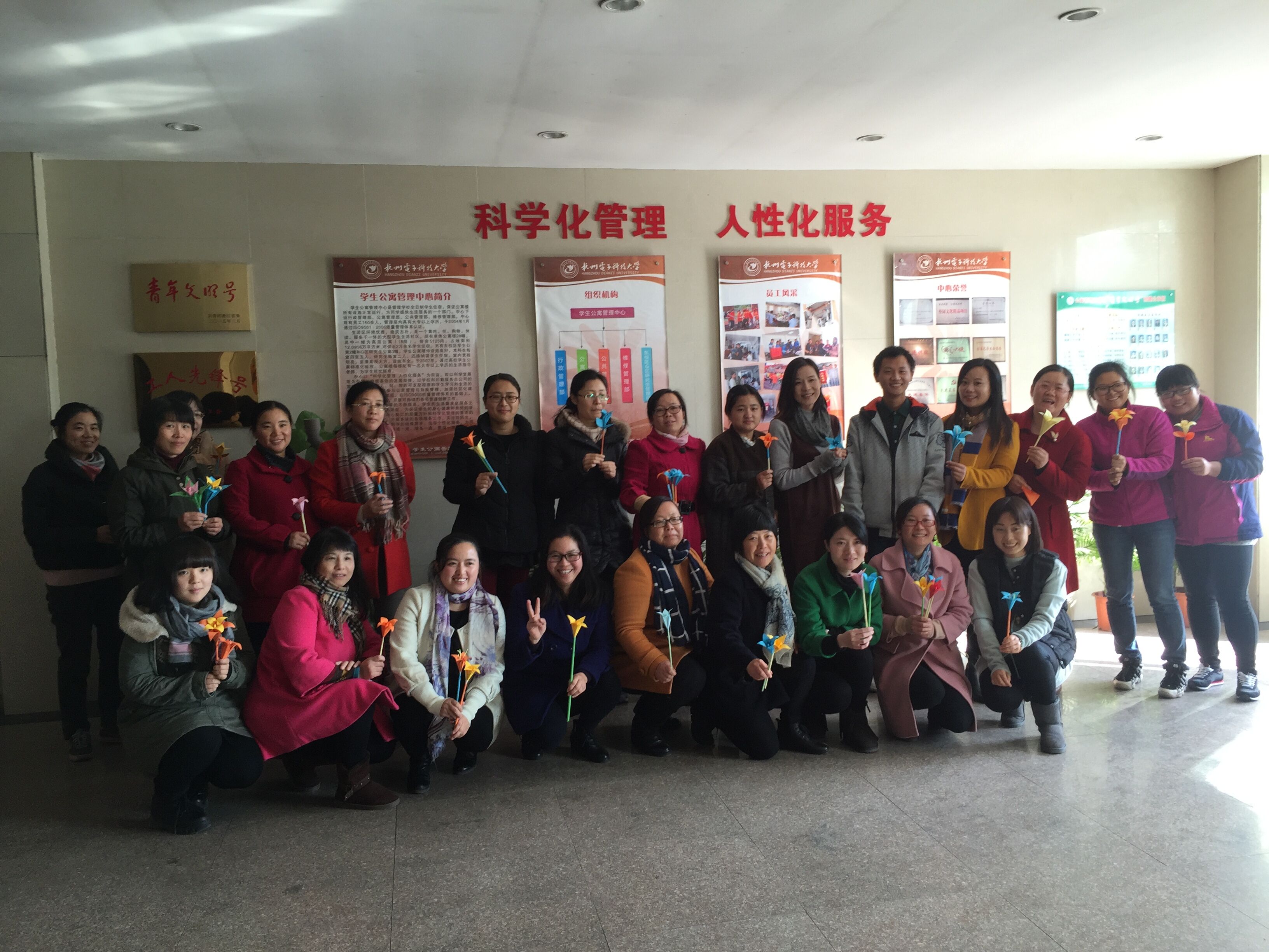 12月4日中午利用休息时间,学生公寓服务中心邀请18号楼211寝室自动化学院的胡乐云同学为全体生活指导老师面授手工折纸花课程。本次活动作为工会职工小家建设系列活动之一,旨在丰富员工的业余生活,陶冶各自的情操,增加集体的凝聚力。
