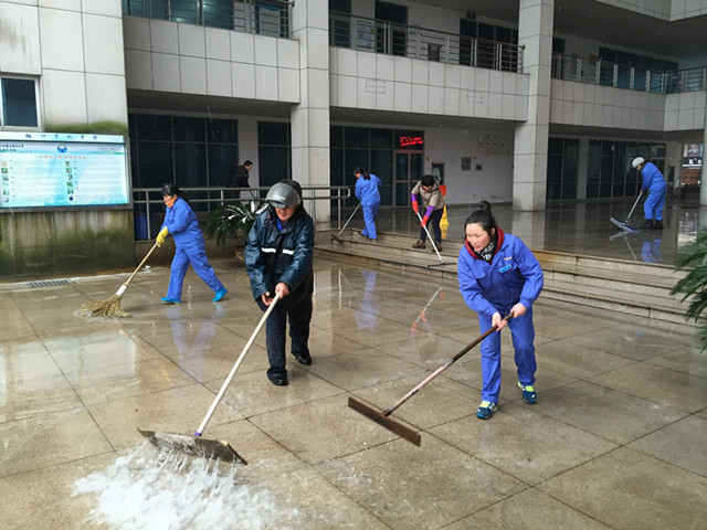 23、24日,正值周末,也是寒潮最严重时期,中心提前安排管理员值班,与员工一起奋战在防寒抗冻第一线。对树木、大棚进行加固支撑并做好巡视工作;及时清扫主干道及各楼宇门厅积雪,防止冰冻;在各校门口铺设草包,楼宇主要出入口设置警示标志和铺设防滑地毯,确保师生安全及教学工作正常开展,。