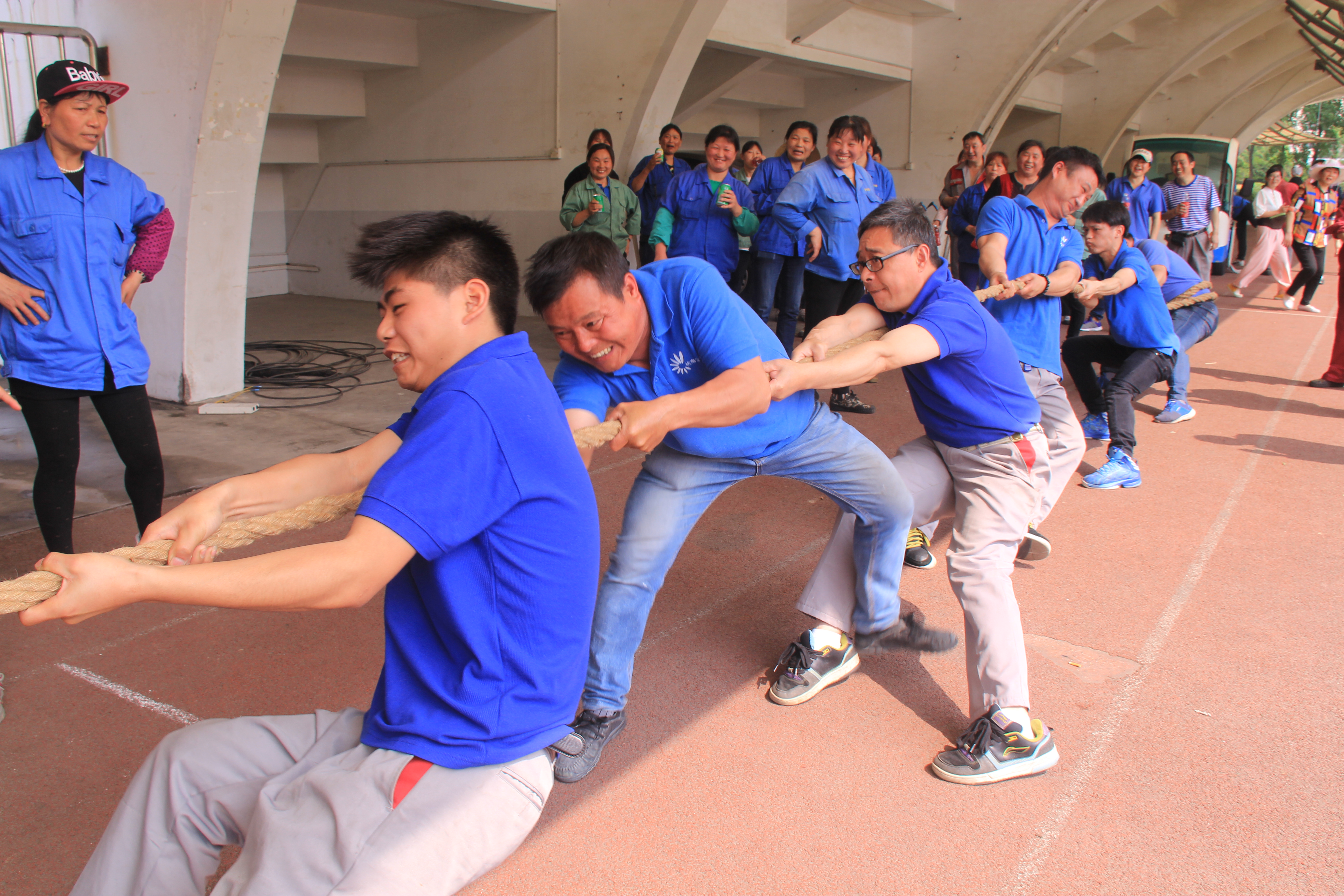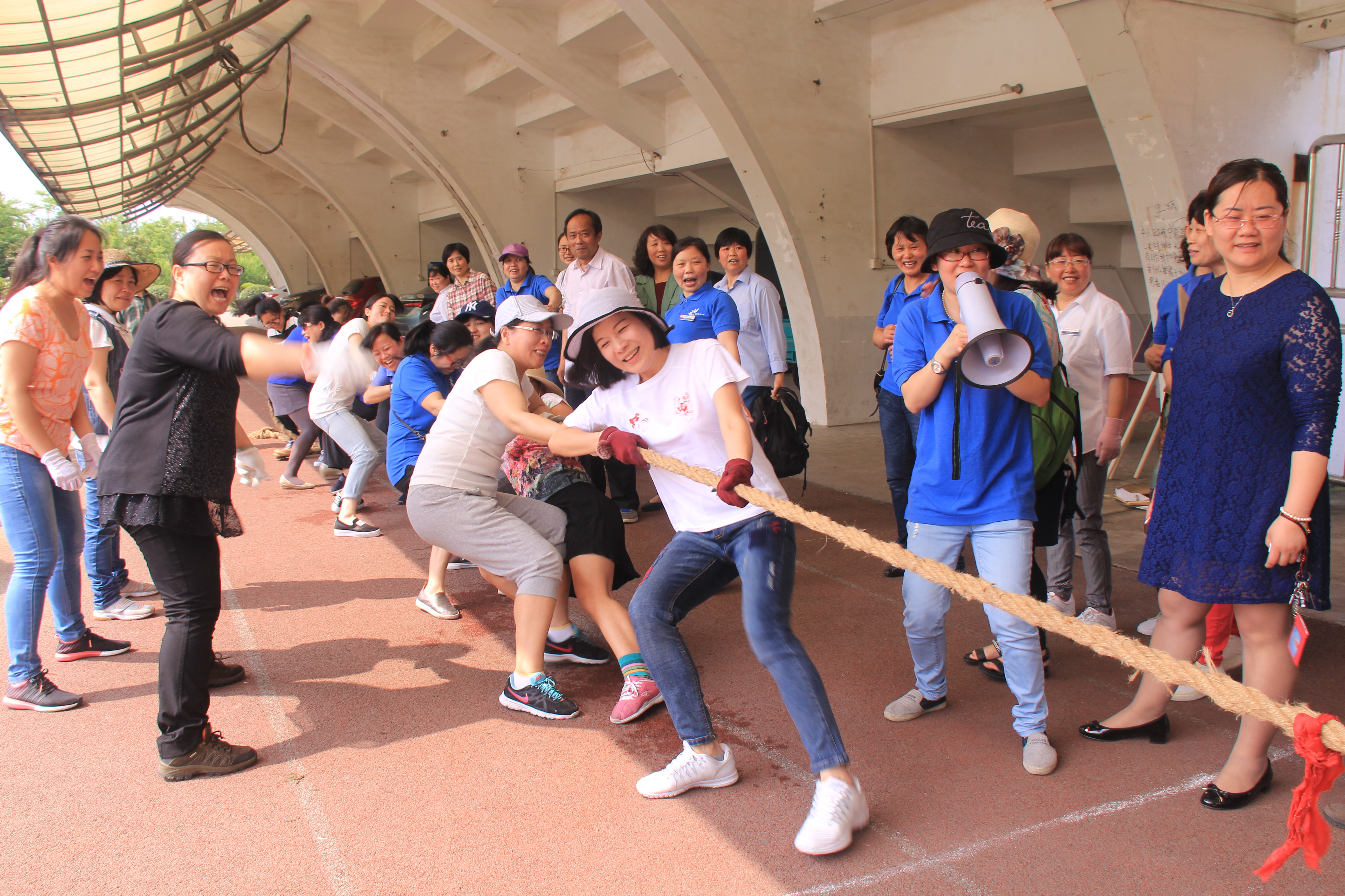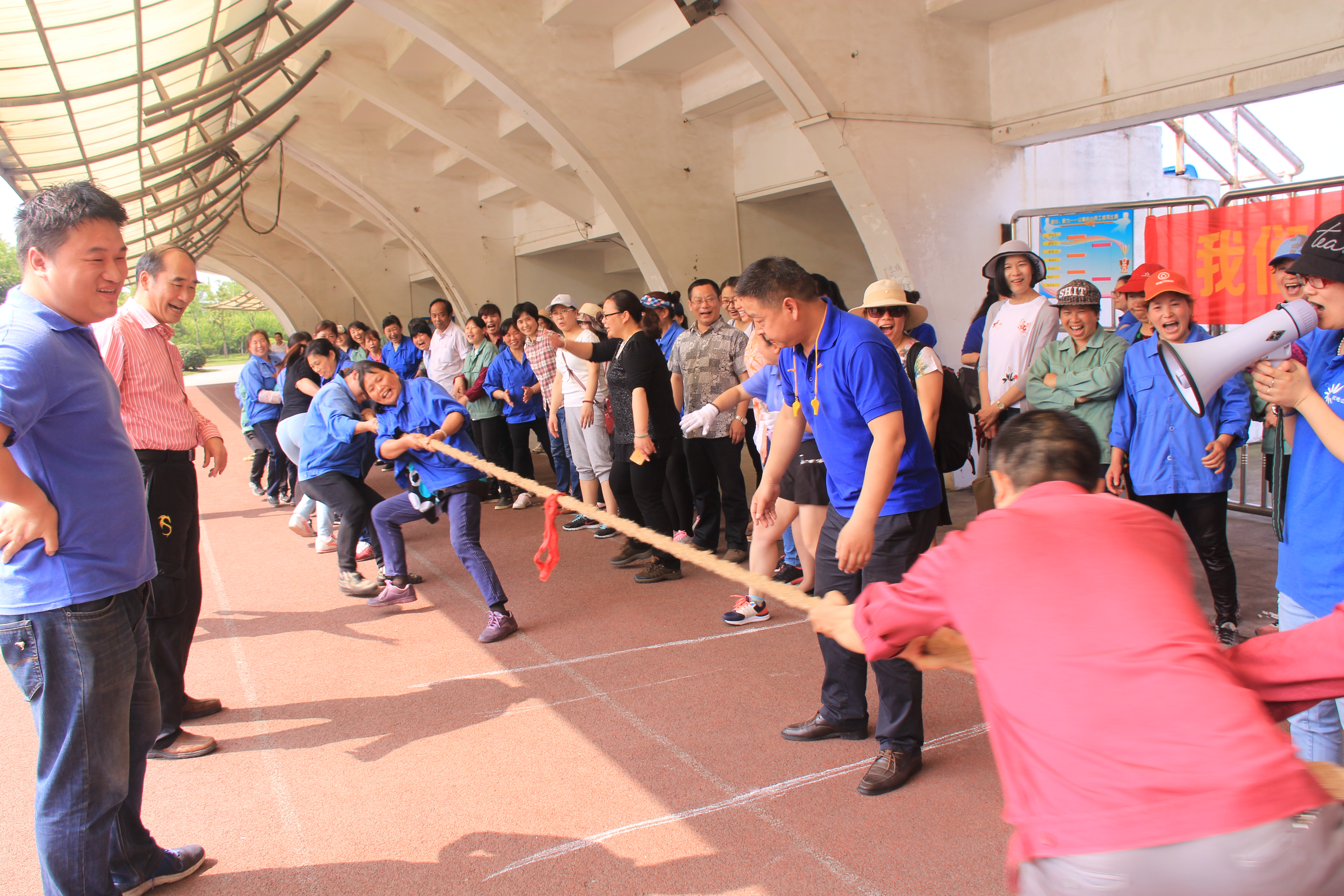 5月5日上午,学校西北田径场风雨跑道上人声鼎沸,欢乐如潮,学生公寓服务中心“凝心,聚力”员工拔河比赛火热举行,公司总工程师朱培华到场观看比赛并为大家鼓劲加油。