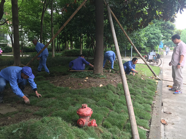 为更好的迎接校庆,营造整洁优美的校园环境,近期,公共服务中心绿化管理部针对校区绿地裸露及草皮不易成活区块,进行了补种工作。