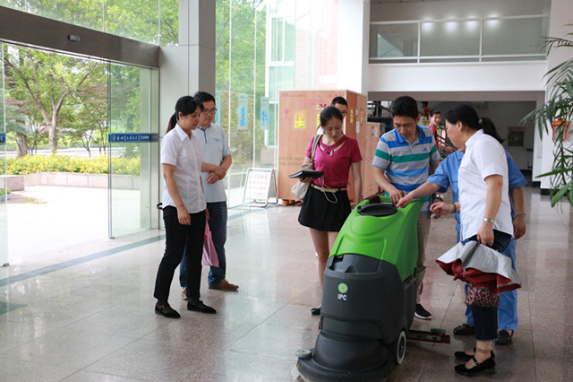 公共服务中心主任、综合管理部及楼宇管理部相关人员接待了来访人员。钱主任表示,此次来访主要是对室内洗地机进行调研。实地参观了洗地机使用情况后,双方就洗地机采购、人员培训、管理等方面进行了交流。