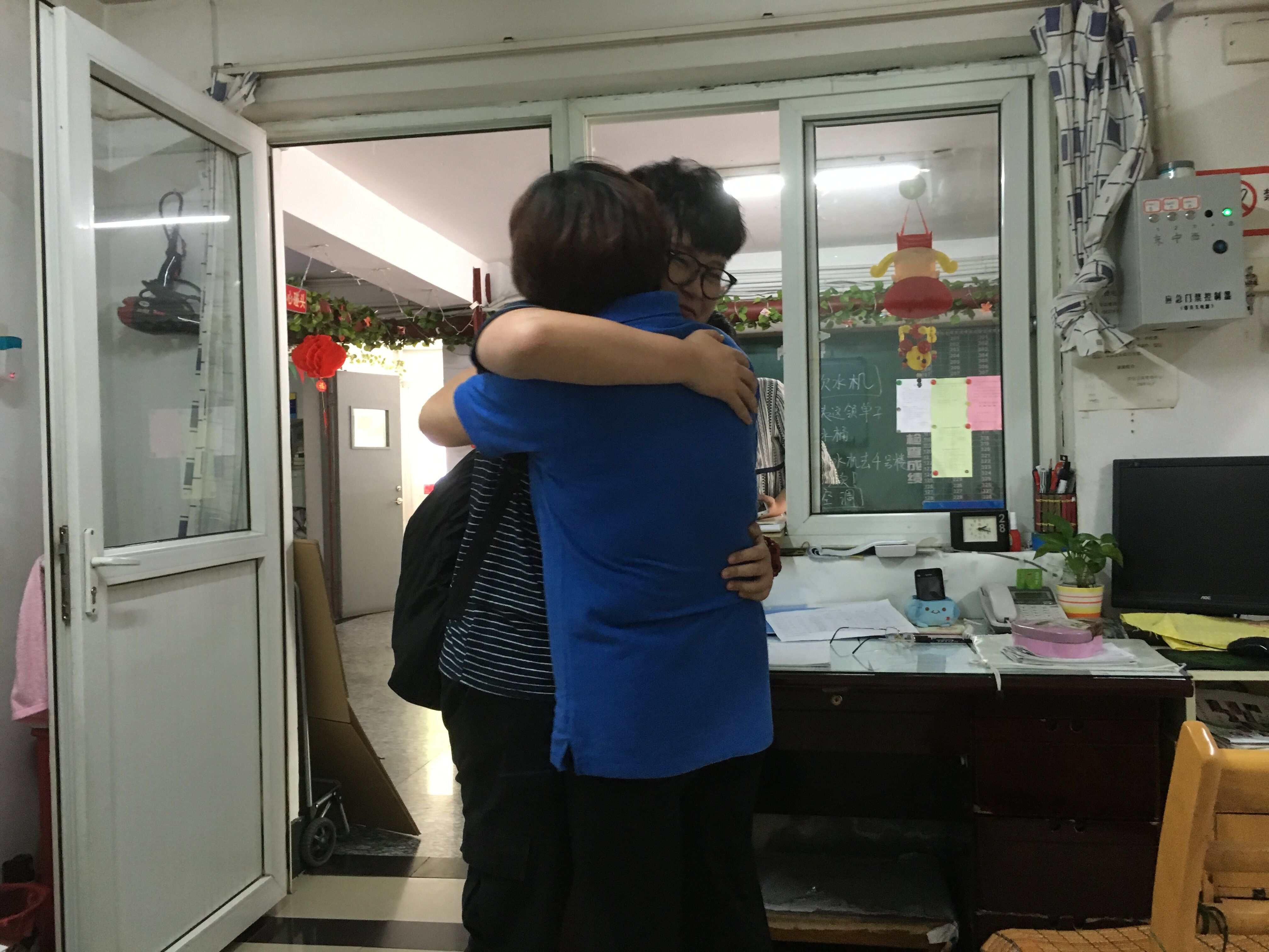 张樟文,28号楼的值班阿姨,已经在杭电工作了16个年头,送走了四、五届毕业生,被学生们称作像外婆一样的阿姨。张阿姨经常会烧一些可口的饭菜带给楼里的学生吃,最受同学们欢迎的就是红烧肉。楼里很多同学都对张阿姨的厨艺赞不绝口,28号楼106寝室的孟珈羽就是其中一位。临近毕业生时,她希望能再吃一次阿姨烧的红烧肉,张阿姨在简单的宿舍里烧了一顿特别丰富的晚餐给毕业生们送别。席间,张阿姨像送别自己的孩子一样,交代了很多生活上的事情。最后当张阿姨说“记得常回来看看,阿姨在这里等着你们,公寓的大门永远为你们敞开……”这句话的时候,眼眶湿润了,喉咙哽咽了,声音颤抖了,那是一种多么的不舍之情啊……孟伽羽在毕业典礼后即将前往北京工作。临走前来到值班室跟张阿姨告别,依依不舍的看着对方,一切尽在不言中,一个深深的拥抱足矣!