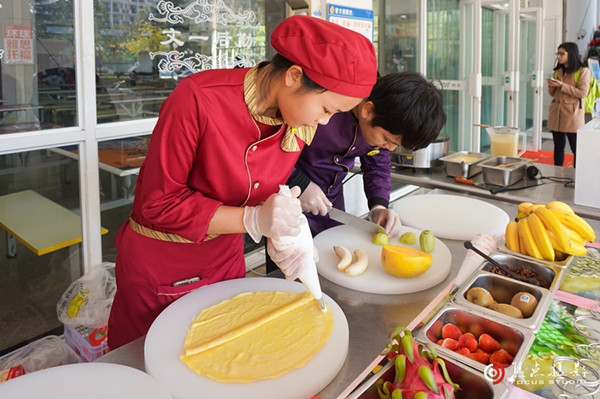 11月11日,由饮食服务中心和校学生膳食管理委员会联合承办的第十届饮食文化节之“DIY披萨秀” 活动在第五餐厅火热举行。吸引了大批同学驻足观看。