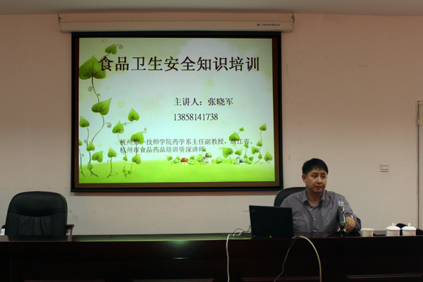 11月18日,由饮食服务中心和校学生膳管会联合承办的第十届饮食文化节系列活动之食品安全知识培训在公司二楼培训教室成功举办。饮食服务中心经理、厨师长和骨干员工80人参加了本次培训。本次培训特邀杭州第一技师学院药学系主任副教授、浙江省杭州市食品药品培训资深讲师——张晓军主讲。