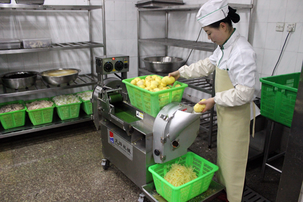 为了加快我校食堂的自动化和智能化建设工作,进一步节约成本,提高劳动效率,继中央厨房米饭生产线设备投产和正式运行以来,近日,我校食堂又增添了几台大型的中央厨房设备:自动包子机、去皮机、洗菜机、切丝切片机等,并在第一时间投放到餐厅。