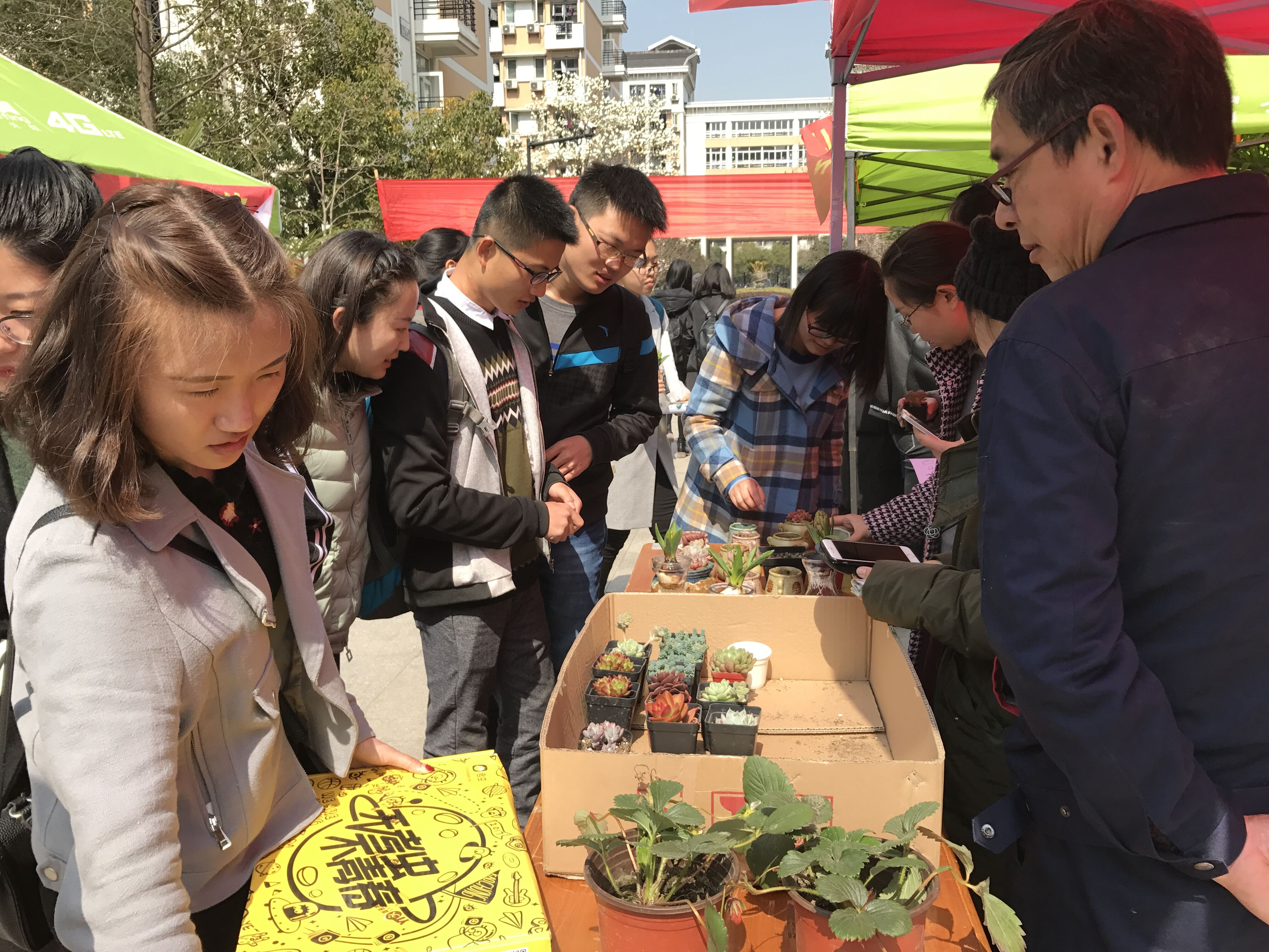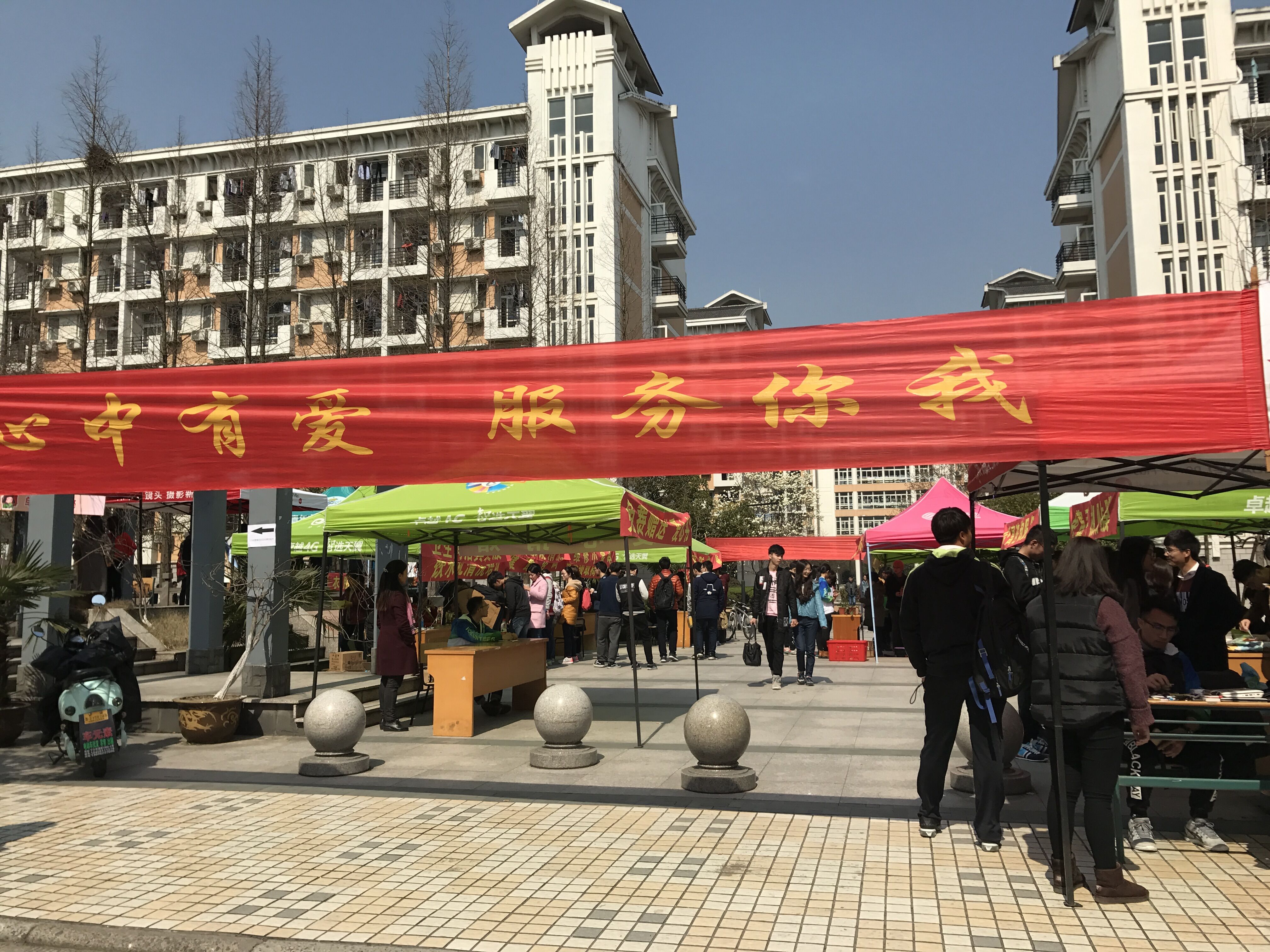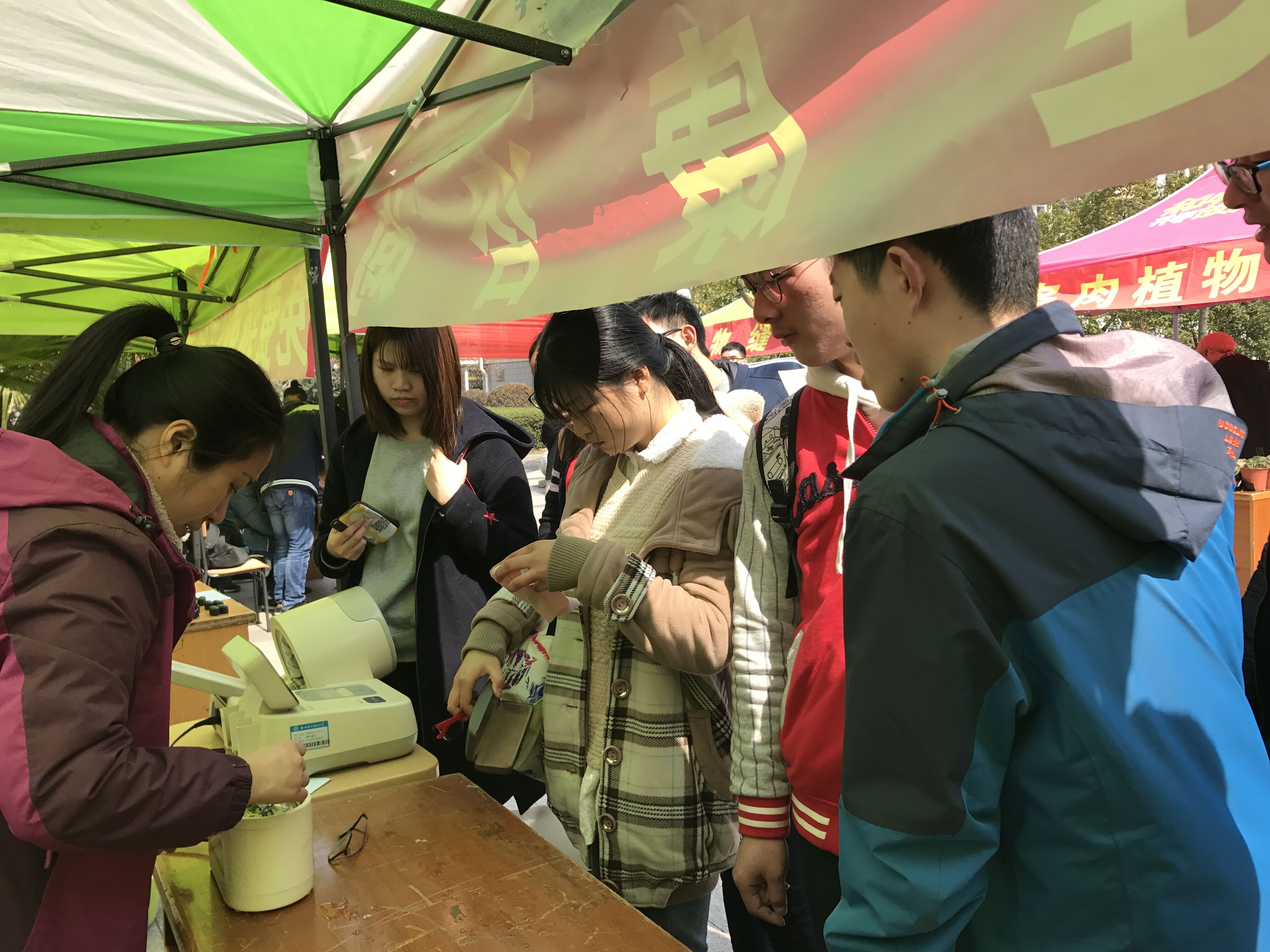 此次活动特别联合了校团委、青年志愿者协会、IT俱乐部等单位,共同推出便民服务、产品维护、健康生活、分享互助四大模块服务。便民服务模块为同学们免费清洗眼镜、缝补衣服、修理鞋子、雨伞等;产品维护模块是由“雷锋叔叔”维修工来帮你修各种小家电,IT俱乐部的同学免费为大家维修电脑,电信、移动工作人员也会提供免费贴膜服务。健康生活模块由校医院会为大家做各类基本健康咨询检查、分享健康知识,杭电多肉协会进行多肉知识宣传、多肉植物展示、同学们现场认领多肉植物美化宿舍环境。分享互助模块则包括了爱心捐赠、失物招领、漂流书屋,现场为同学们提供一个奉献爱心的平台。其中150余盆多肉植物半个小时就认领结束,场面火爆。到了下午5点,IT俱乐部摊位前还是围满了同学,热情不减,学生自主服务模式非常受欢迎。当天累计服务学生约2000余人次。