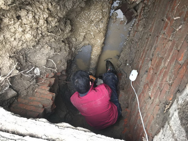 经排查,实验大楼西侧的一处进水管(DN100)老化破损导致漏水,城区维保部做好停水抢修的各项安全措施后,立即着手修复。