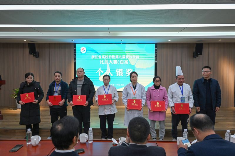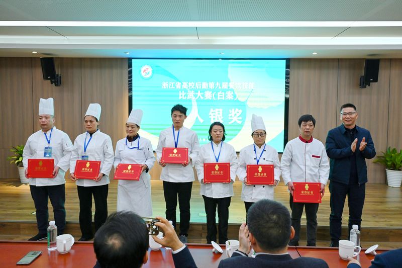 我校后勤餐饮代表队凭借精湛的技艺、创新的理念和稳定的发挥,在众多参赛高校中脱颖而出,斩获团体第五名的优异成绩。同时,在个人单项赛中,我校选手亦表现不俗,三餐厅的蔡奎生与教工餐厅的杨俊同获个人银奖,充分展现了我校餐饮队伍雄厚的实力与卓越的风采。