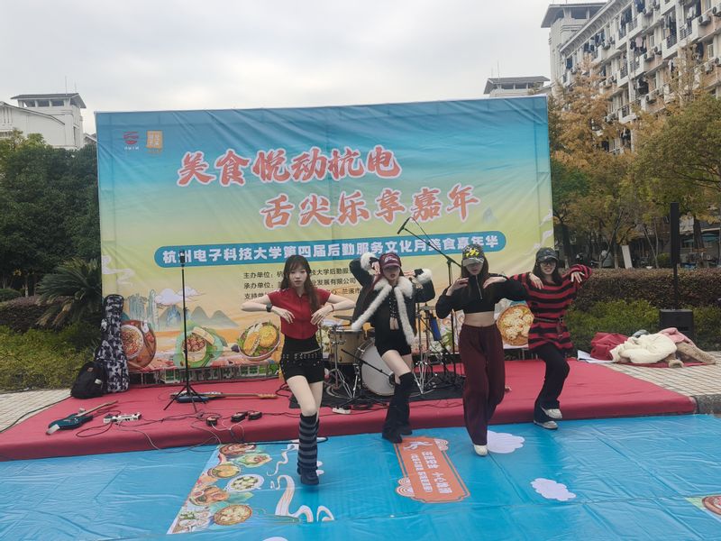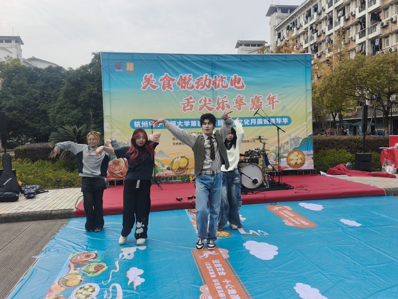 活动不仅“好吃”,更注重“好玩”与“好看”。抽奖与套圈活动吸引了不少人参与,主舞台上,吉他社团、街舞社以及校园歌手么们轮番上场,将气氛一次次推向高潮。更为难得的是国际交流学院的土库曼同学献上了自己家乡的民族舞蹈,为在场所有人带来了前所未有的视觉享受。许多参与同学表示,嘉年华不仅让他们大饱口福,更深刻感受到了学校后勤服务的用心与温度,以及杭电校园特有的青春活力与文化凝聚力。