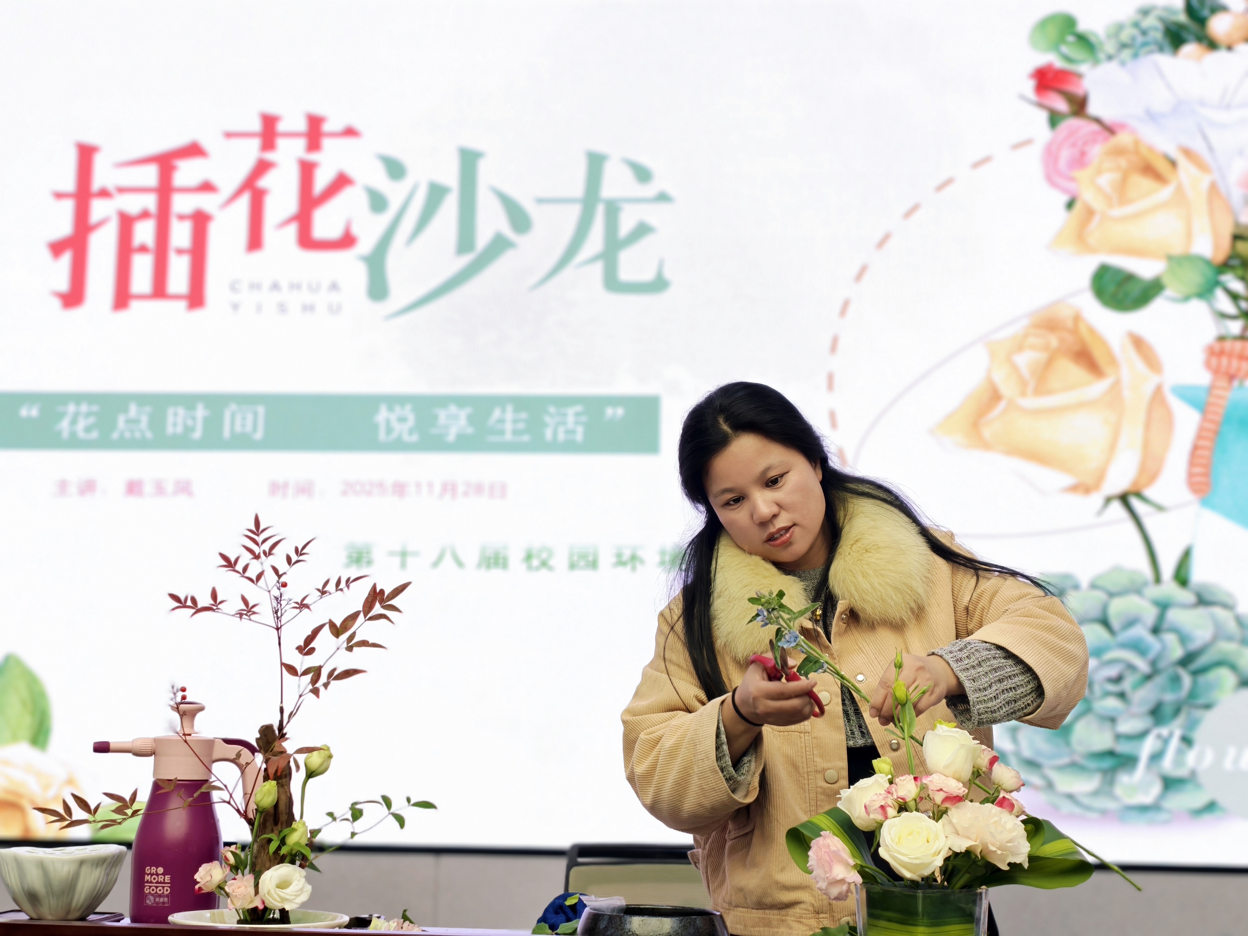自后勤服务文化月拉开序幕以来,第十八届环境文化节各项子活动也陆续开展。11月21日、11月28日分别开展了“花点时间,悦享生活”插花活动,受到师生员工的一致好评。