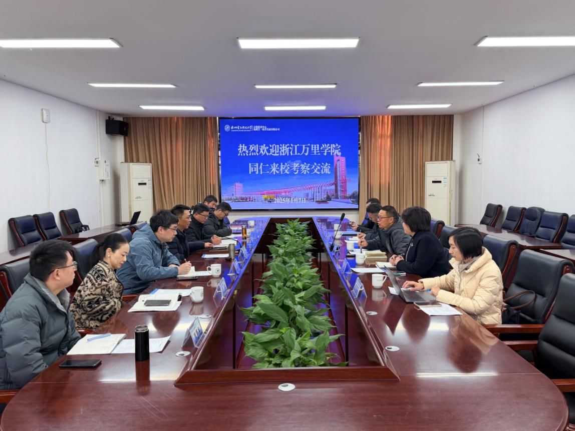 1月7日上午,浙江万里学院副书记、副校长马建荣一行5人来学校调研交流。我校后勤服务中心党委书记、主任王劲峰接待并主持座谈会。后勤服务中心办公室、饮食服务部、公寓服务部、商贸服务部、物业服务部及财务部相关负责人参加会议。