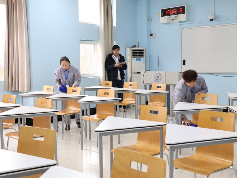 比赛当日,现场氛围热烈而有序。在教室清洁比武项目中,参赛选手们严格按照操作规范,有条不紊地开展清扫、拖地等一系列操作,动作娴熟利落,细节把控到位,充分展现了扎实的岗位技能;绿化技能比武现场,选手们则在笔试和实操环节各显身手,凭借丰富的实战经验和专业技巧,将对绿化养护的专业理解融入每一个操作步骤,展现了良好的专业素养。评委们本着公平、公正、公开的原则,围绕操作规范性、效率、质量等核心维度进行细致考评、精准打分。