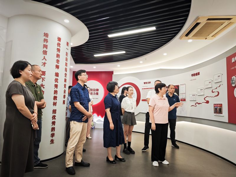 在实地参观环节,支部党员跟随学校网络空间安全学院学工办主任刘莉的脚步,走进网安学院“红客精神馆”“红客文化墙”和“廉政文化角”。通过现场讲解和图文展示,党员们深入了解了网安学院的发展历程、育人成果以及在服务国家和地方保密工作中取得的突出成绩。大家深刻感受到“红客精神”中蕴含的技术报国、忠诚担当的家国情怀,进一步强化了维护网络安全的政治自觉和行动自觉。