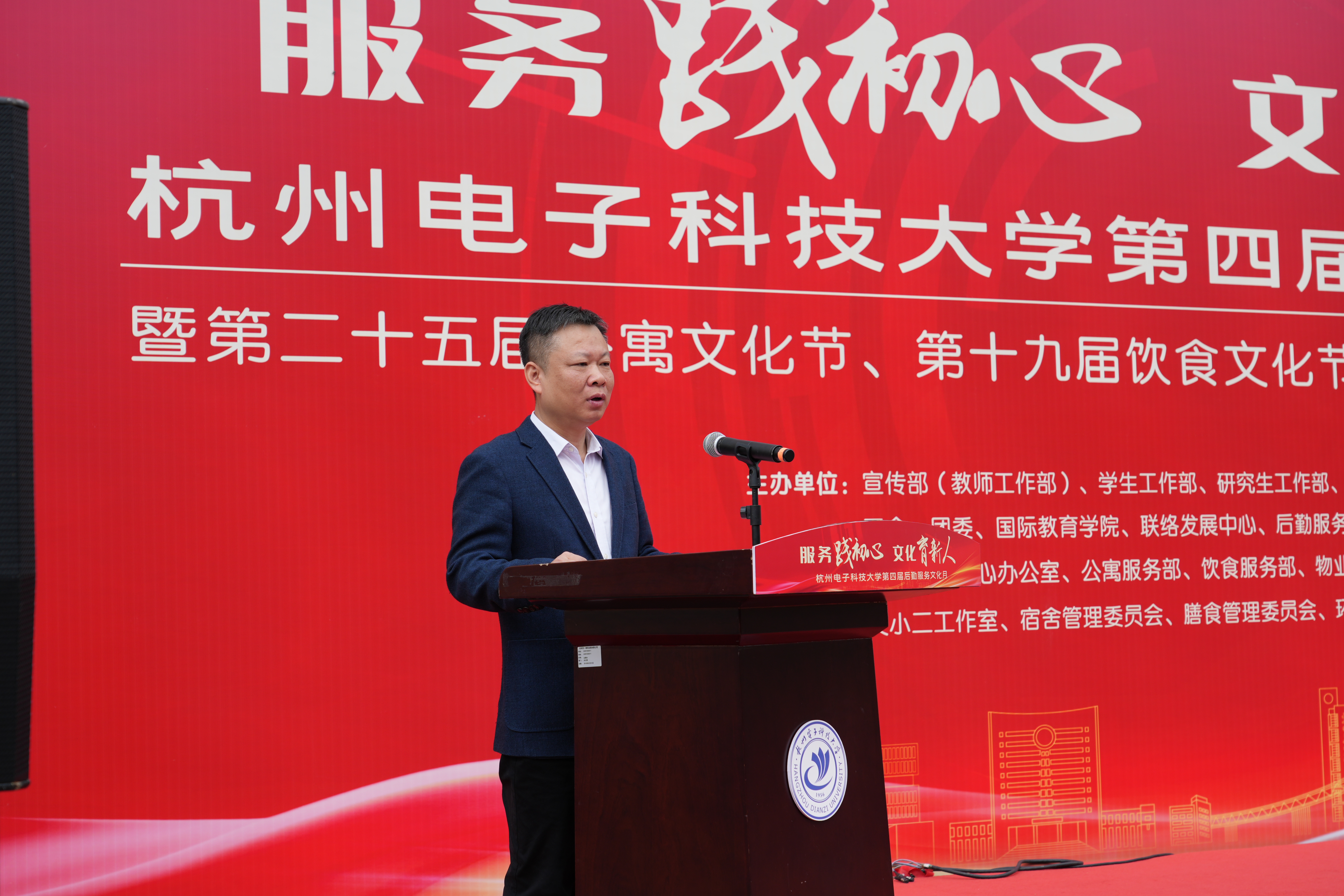 由杭州电子科技大学吉他协会带来的活力表演拉开序幕,点燃现场氛围,学校相关部门负责人、部分学院学生工作负责人,后勤服务中心干部职工代表以及学生代表参加了本次开幕式。