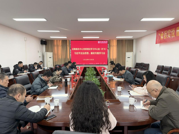12月3日下午,后勤服务中心党委理论学习中心组召开(扩大)学习会,围绕习近平法治思想、廉政专题开展学习研讨。后勤服务中心党委书记、主任王劲峰主持会议并作领学。