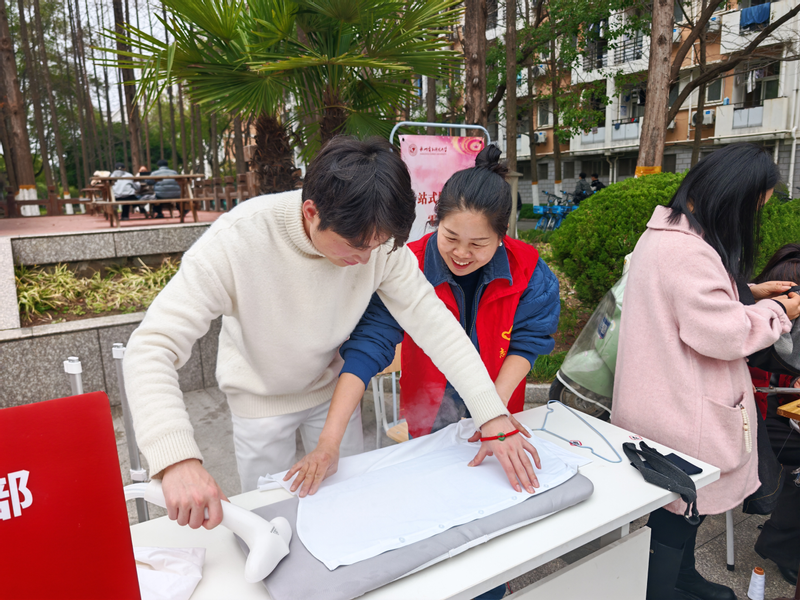 服务育人更有深度。在生活区清风小广场,公寓党支部、维修服务部联合开展学雷锋,追“锋”在行动主题活动。“阿姨的缝纫技术简直太赞了”“衣服熨烫后面试更有信心了”......活动现场,缝纫台前围满了学生,30多年“工龄”的老式缝纫机发挥着它的余热,在小家电维修点,维修志愿者用巧手耐心地让家电获得“重生”,眼镜清洗区、椅子脚套领用区和熨烫区现场同样火爆,不时还排起长队等候。与此同时,活动区还特别设置了爱心补给站和咨询台,为过往师生送去了温暖和祝福。在场的同学纷纷表示,学雷锋服务活动太有意义了,大家都想加入到服务队伍中。